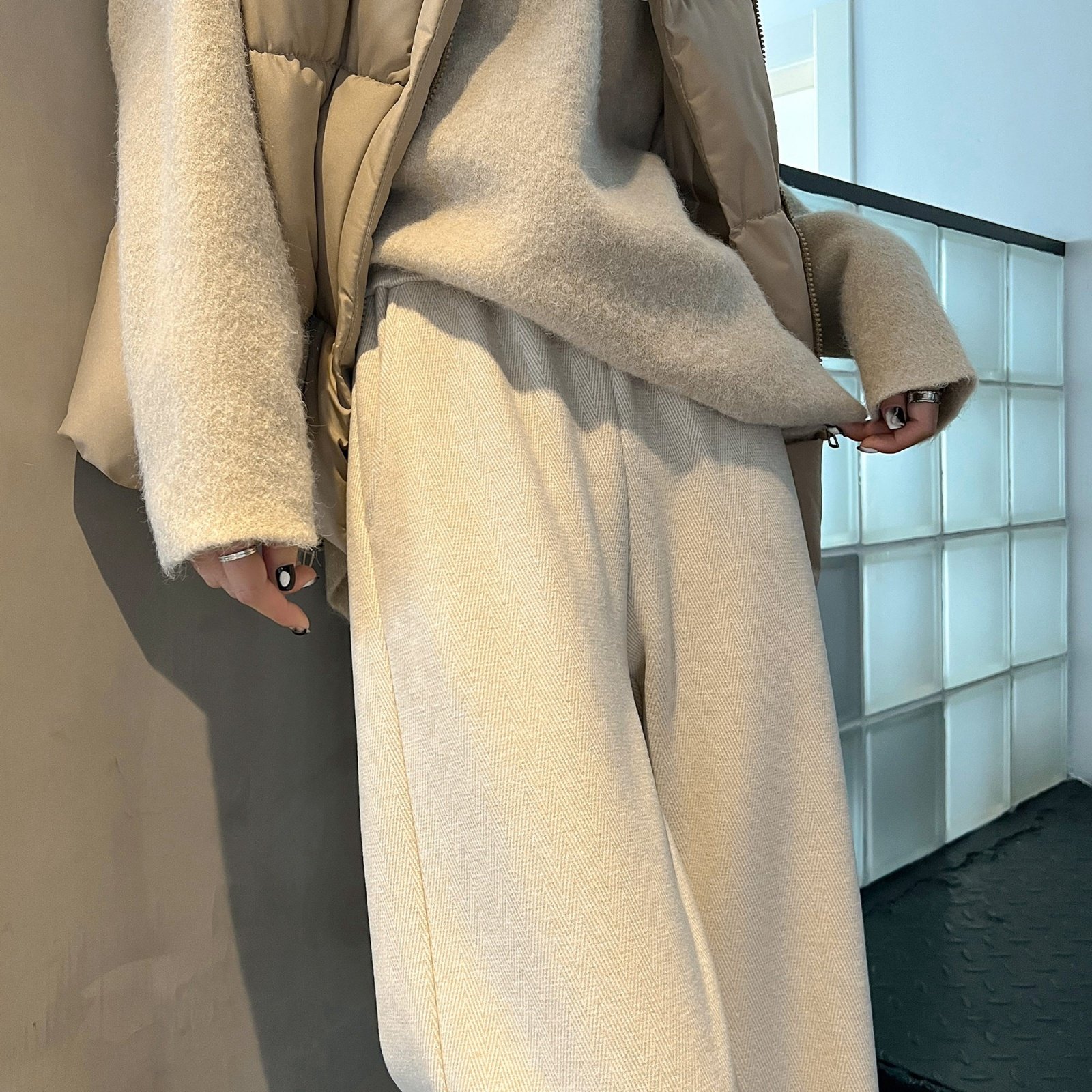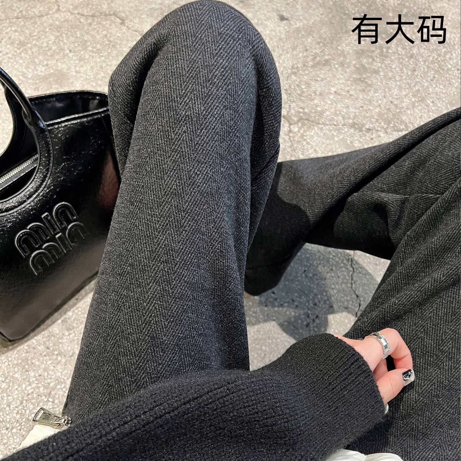 黑色毛呢窄版阔腿裤女2025秋冬高腰加绒休闲裤子大码人字纹直筒裤