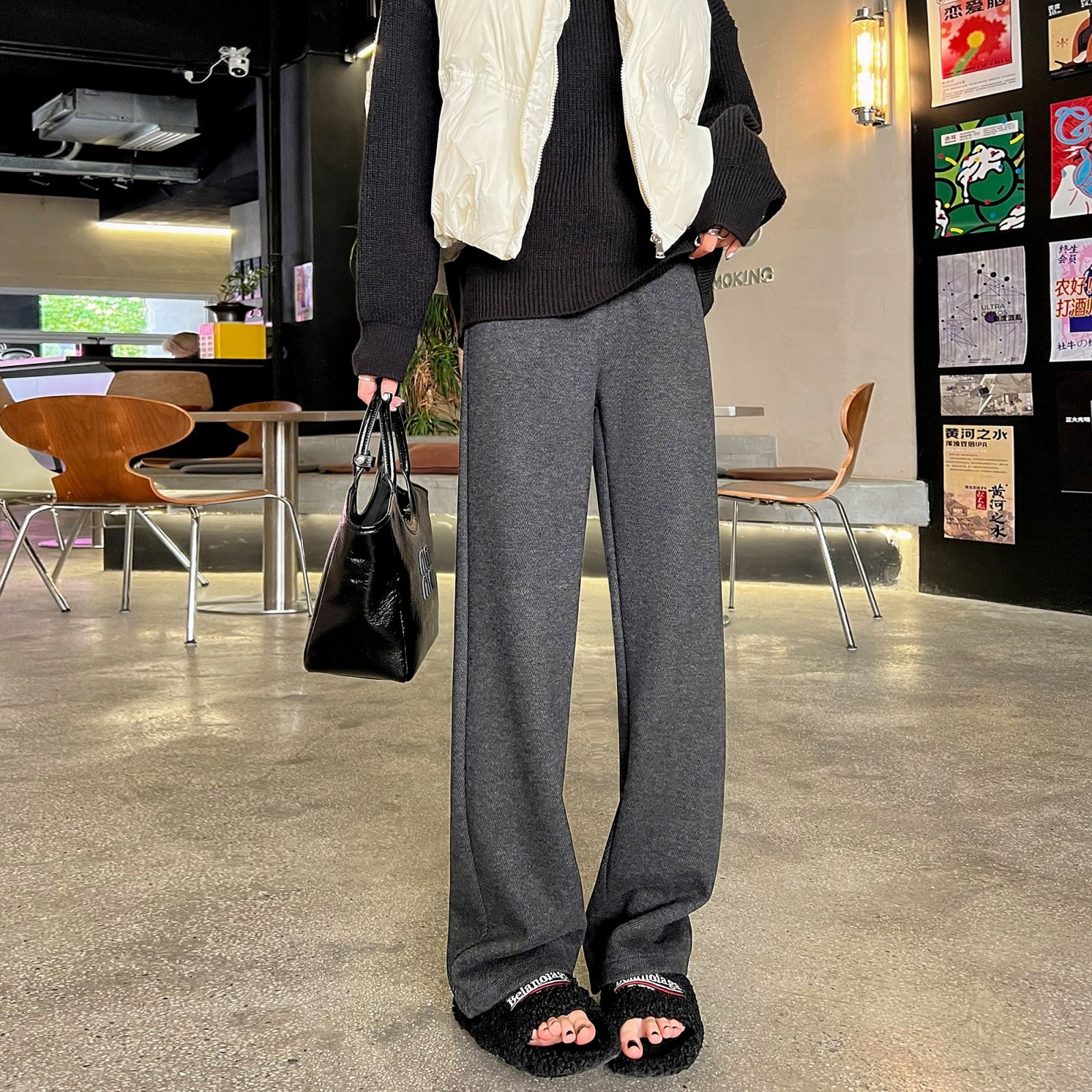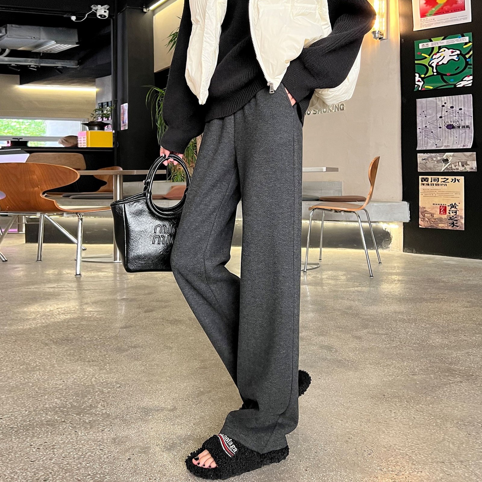 深灰色微喇休闲裤女2025秋冬加绒胖妹妹mm高腰弹力显瘦运动卫裤潮