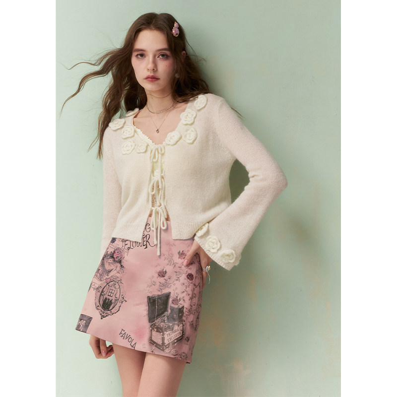 妖精的口袋复古猫咪印花撞色半身裙女2026年春夏新款甜酷百搭短裙