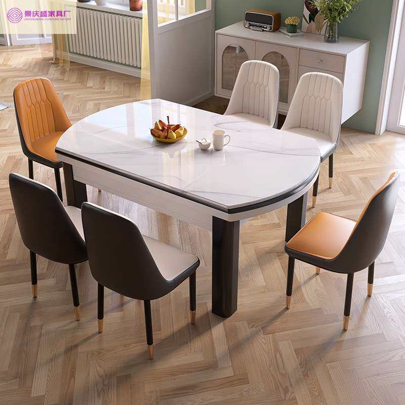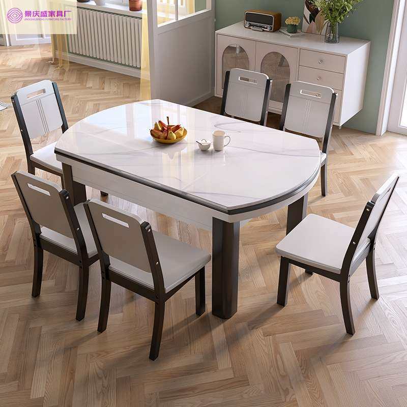 新款可伸缩折叠方圆两用吃饭桌子大理石餐桌椅组合现代简约家用