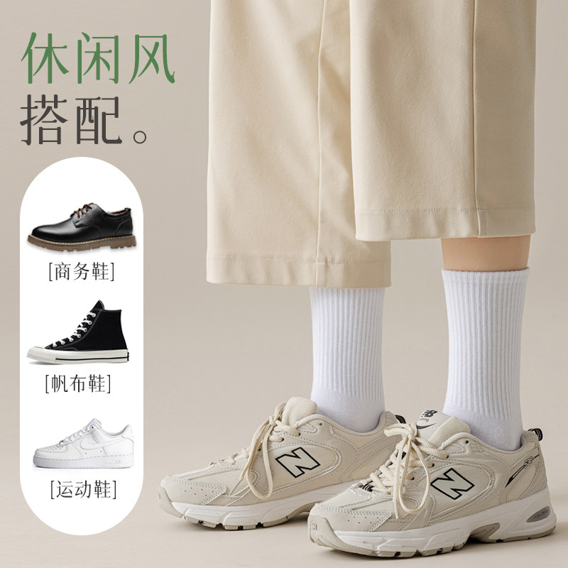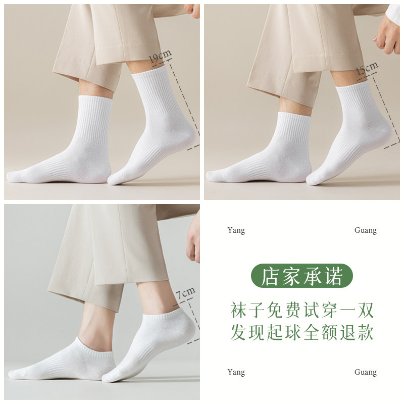 白色袜子男春夏长袜防臭吸汗中筒男士运动短袜秋款长筒无骨袜诸暨