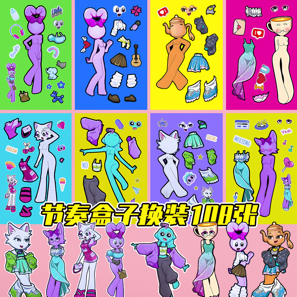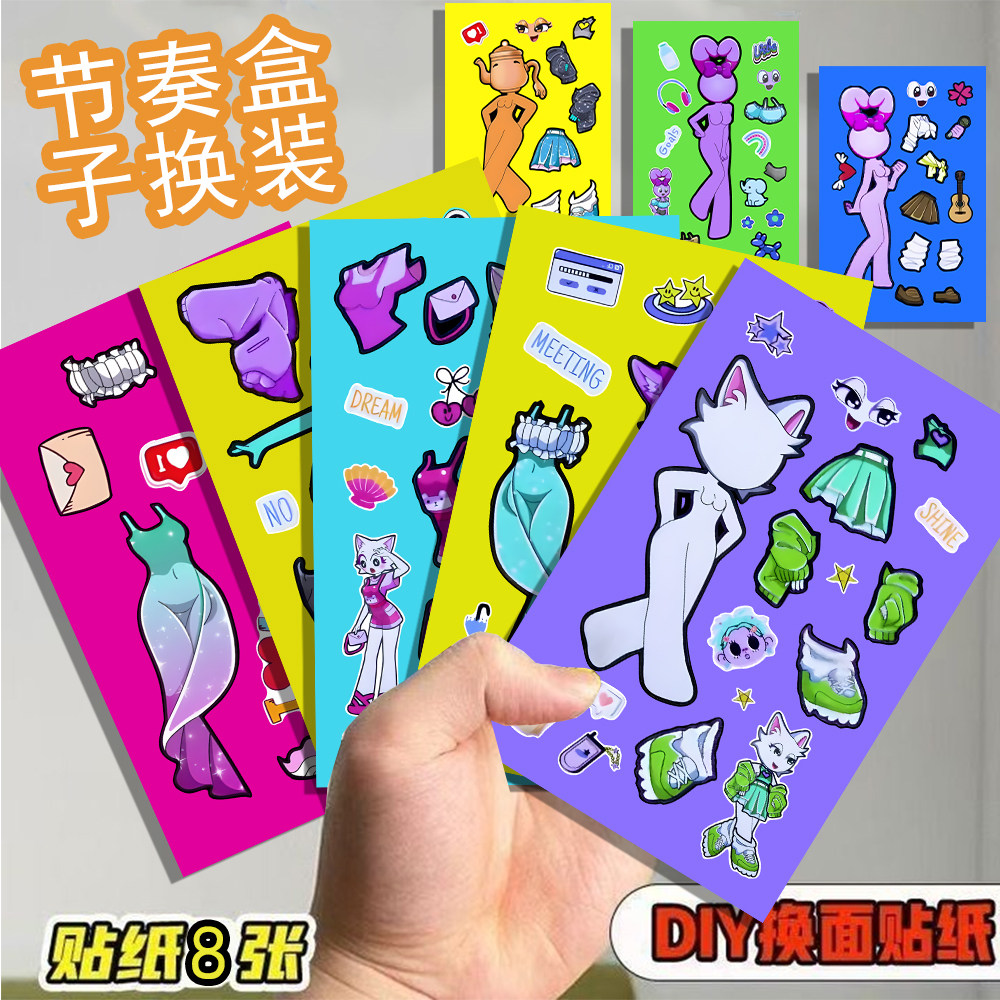 sprunk节奏盒子换装贴纸卡通儿童益智玩具拼贴培养孩子专注力贴画