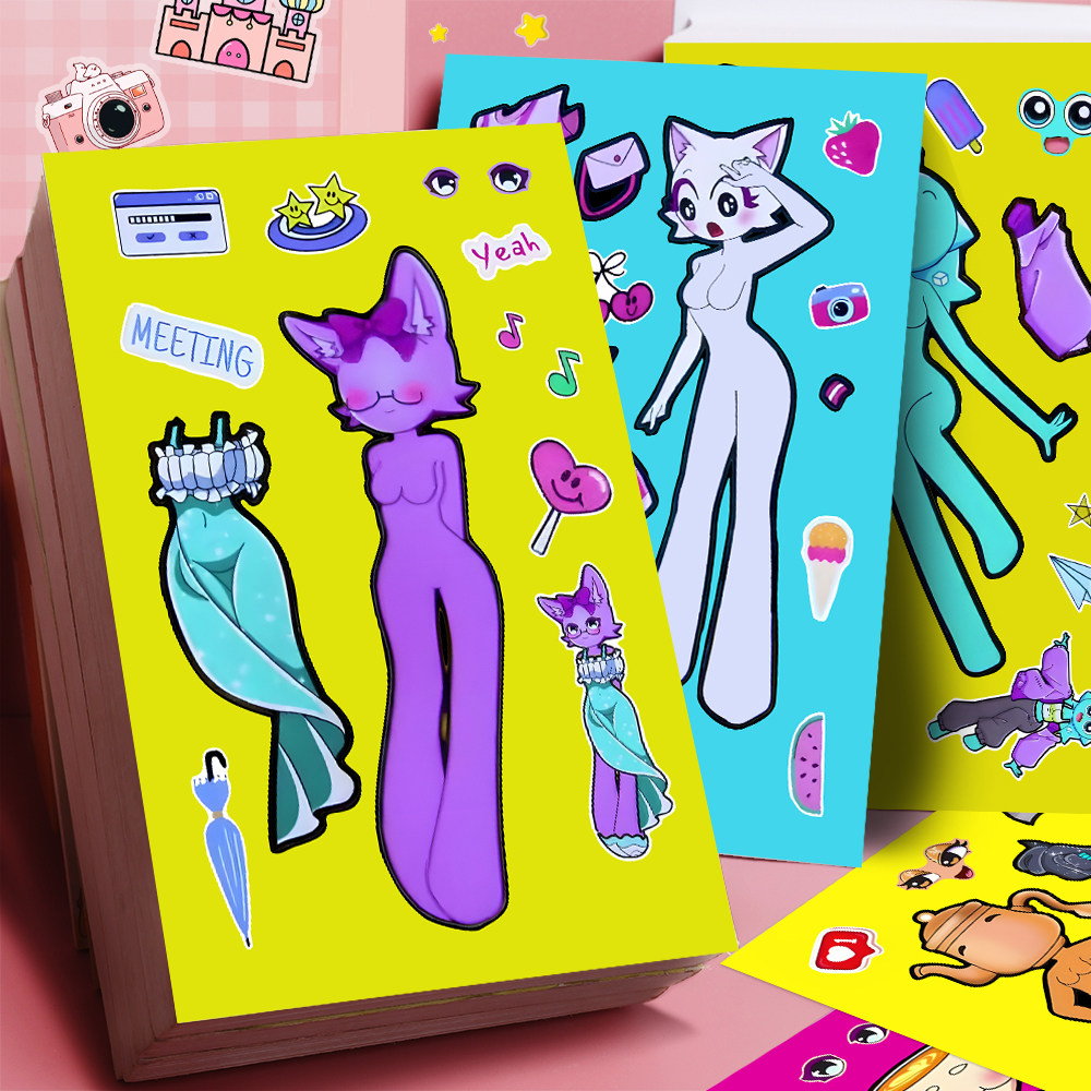 萌崽新款学霸学渣果冻贴纸安静书儿童免裁剪手工粘贴DIY女孩趣味玩具