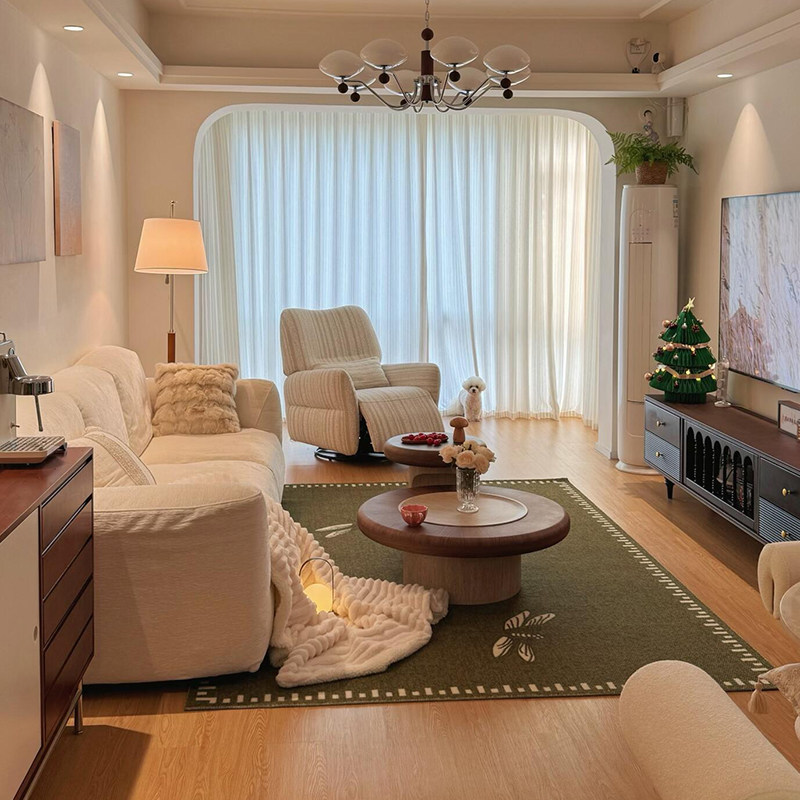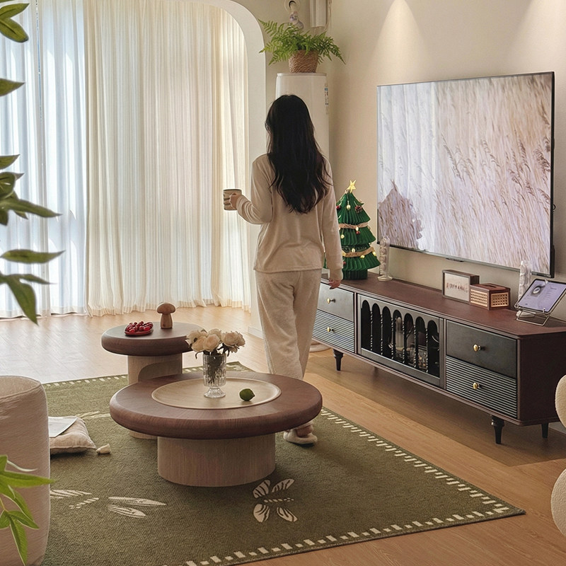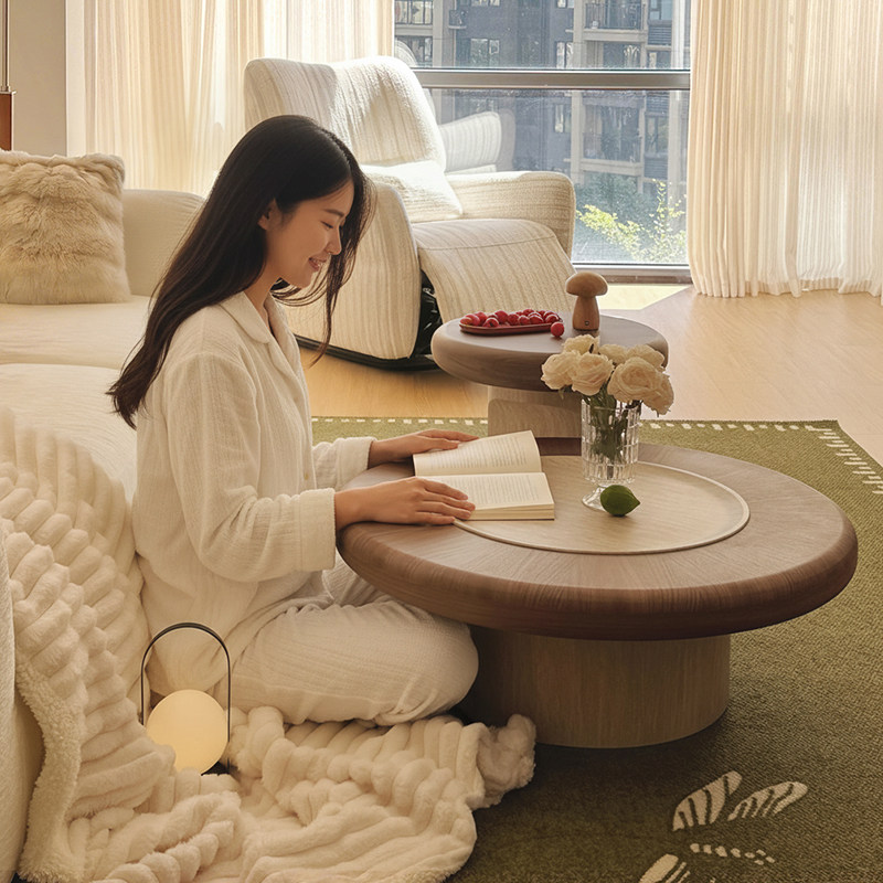 中古风洞石圆形茶几2026新款家用小户型高级感蘑菇大小圆茶几组合