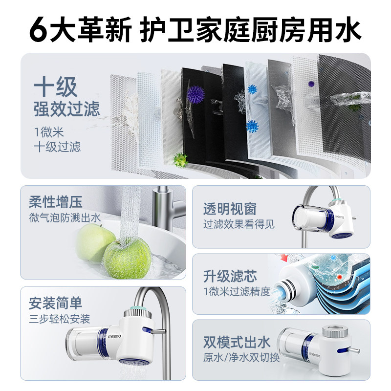 咪呐净水器家用水龙头前置过滤器自来水直饮厨房通用超滤净化器