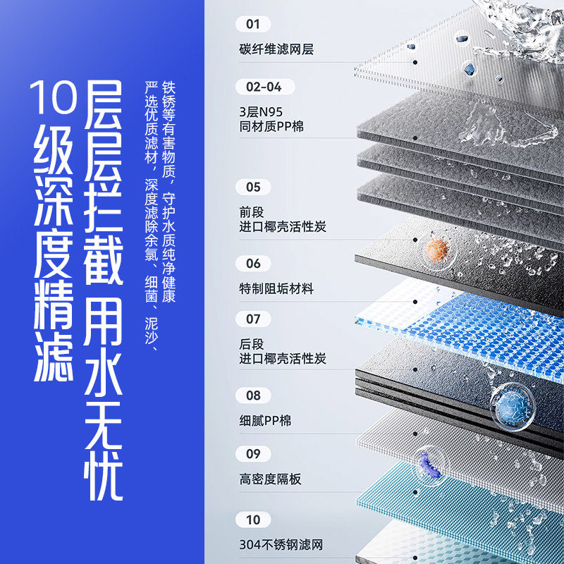 净水器家用直饮厨房自来水超滤净化水机前置活性炭五级过滤器