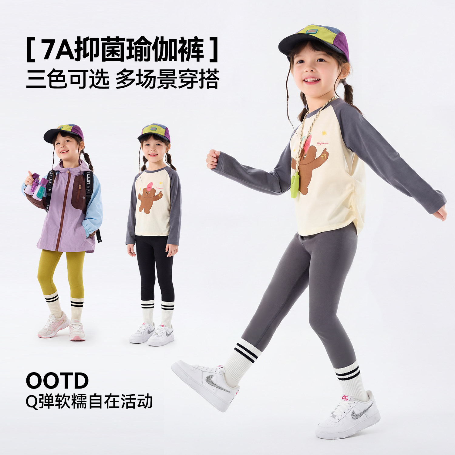 纳柚儿童裤子春秋女童鲨鱼裤中大童长裤瑜伽裤外穿加绒打底裤秋冬