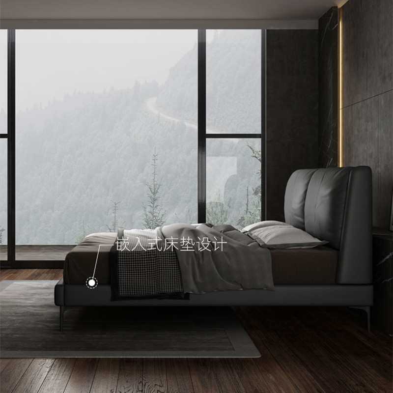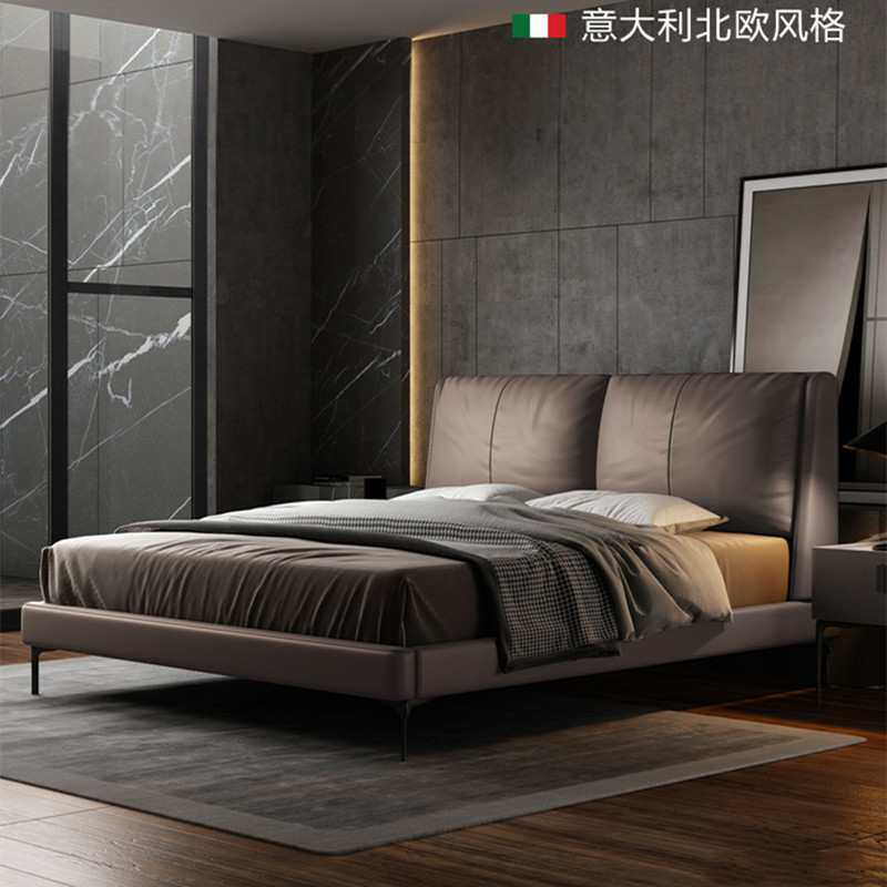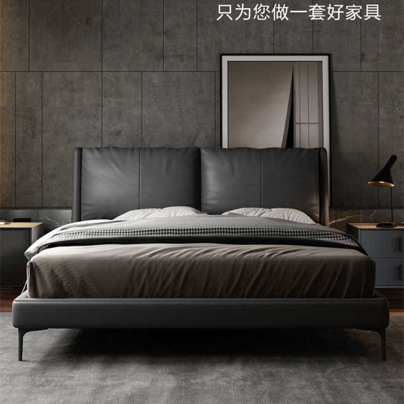 真皮床意式极简床轻奢床现代简约北欧软包皮床主卧室皮艺双人床