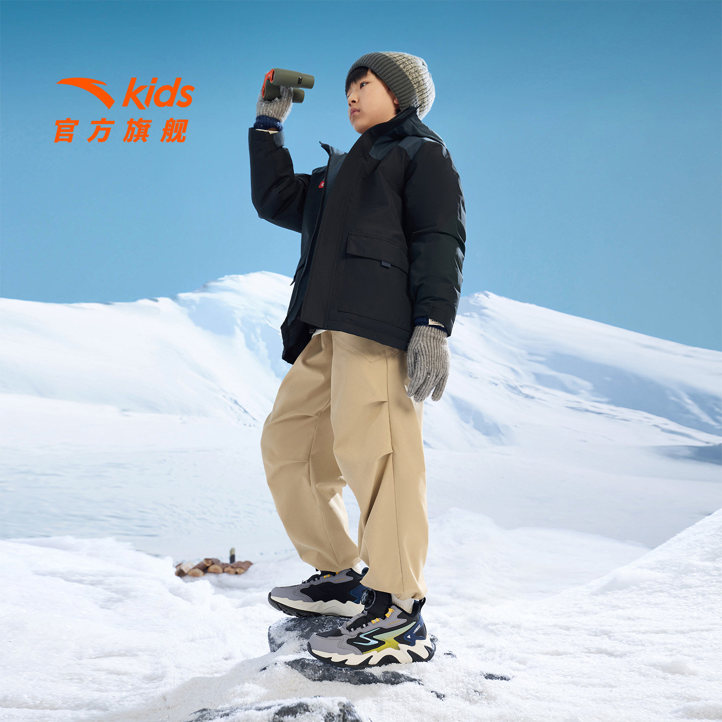 安踏儿童男童棉鞋加绒加厚保暖运动鞋二棉鞋冬季大童雪地靴童鞋