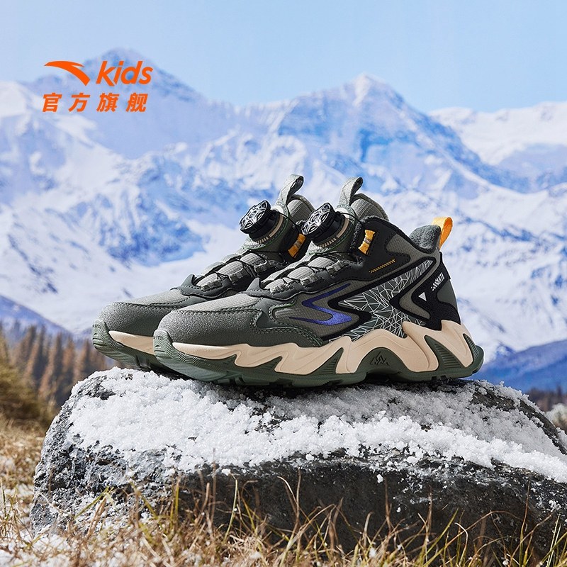 川尘3|鸿星尔克童鞋冬季加绒男中大童鞋子保暖加厚二棉休闲运动鞋