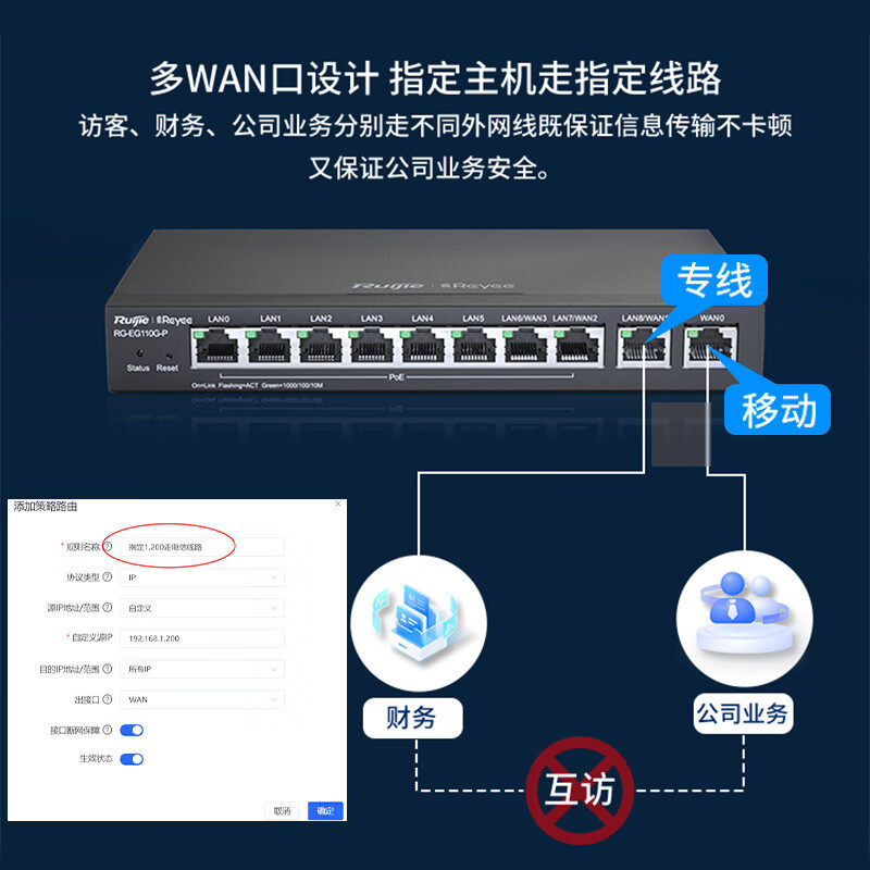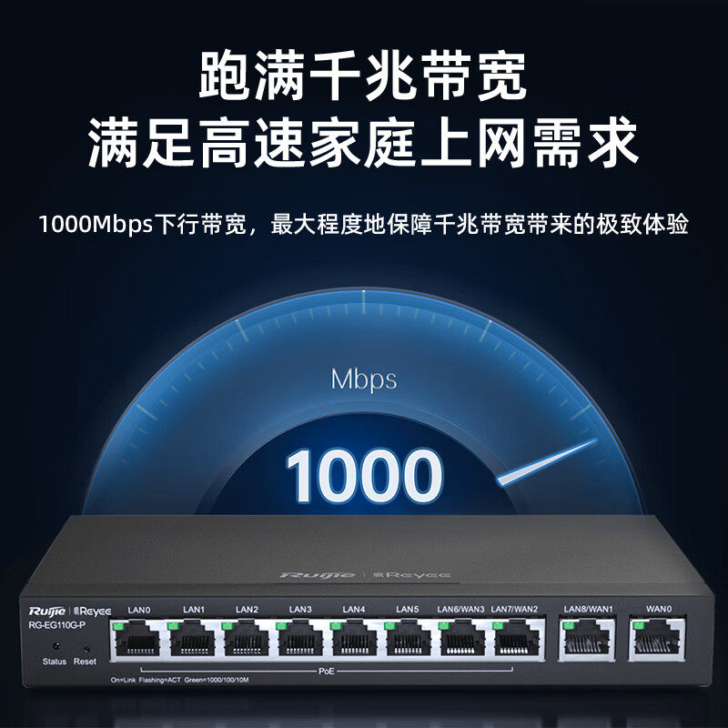 锐捷千兆有线路由器睿易RG-EG110G-P V2网络网关 8口POE供电AC控制器一体机 多WAN口宽带聚合 官方旗舰店
