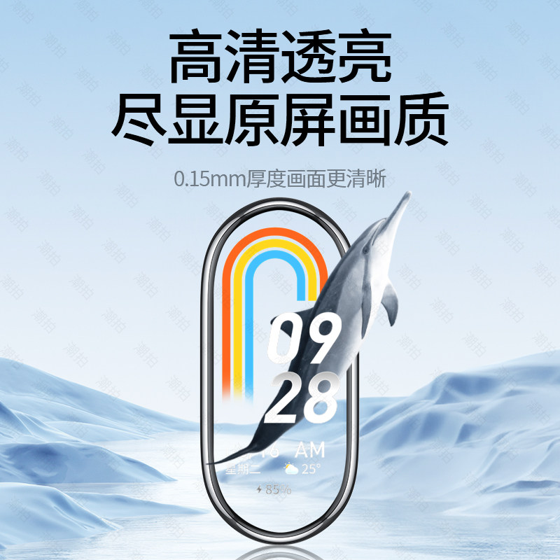 适用小米手环9保护膜小米8nfc版智能手表7小米手环七八九代表盘膜屏幕贴膜钢化全屏全包防摔小米手环9代