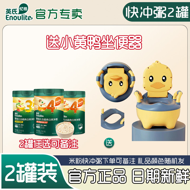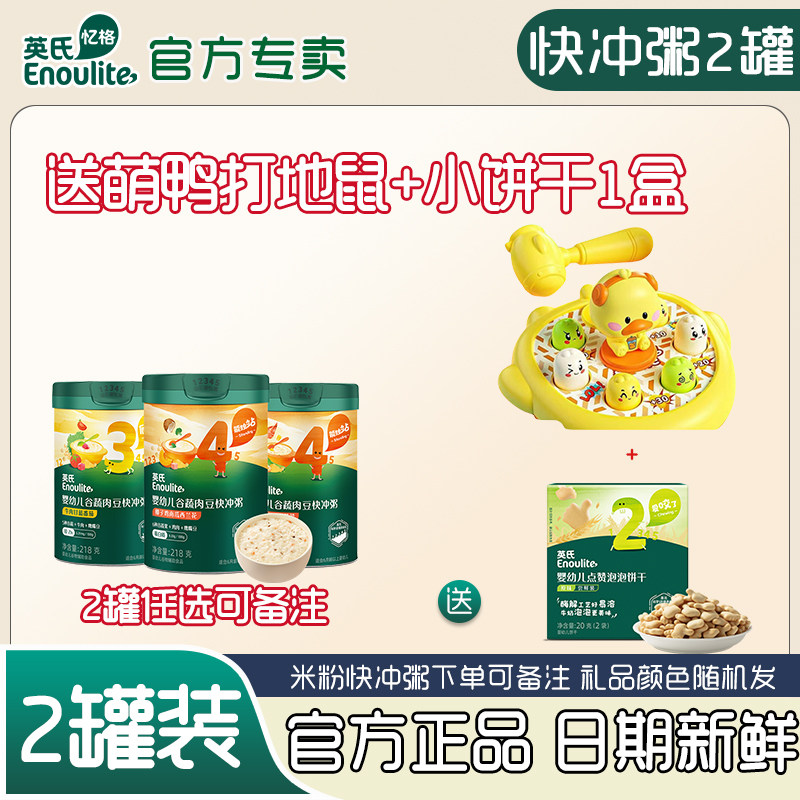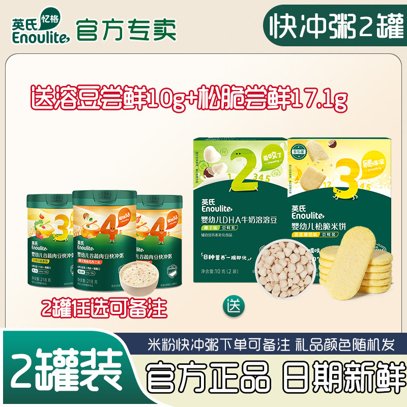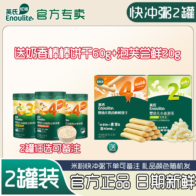 英氏快冲粥2罐送辅食碗宝宝米粉速食冲泡1岁婴儿4段米粉罐装218g