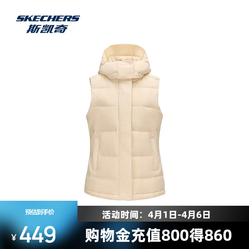 斯凯奇羽绒背心秋冬新款官方正品厚款连帽高领防风保暖鸭绒马甲
