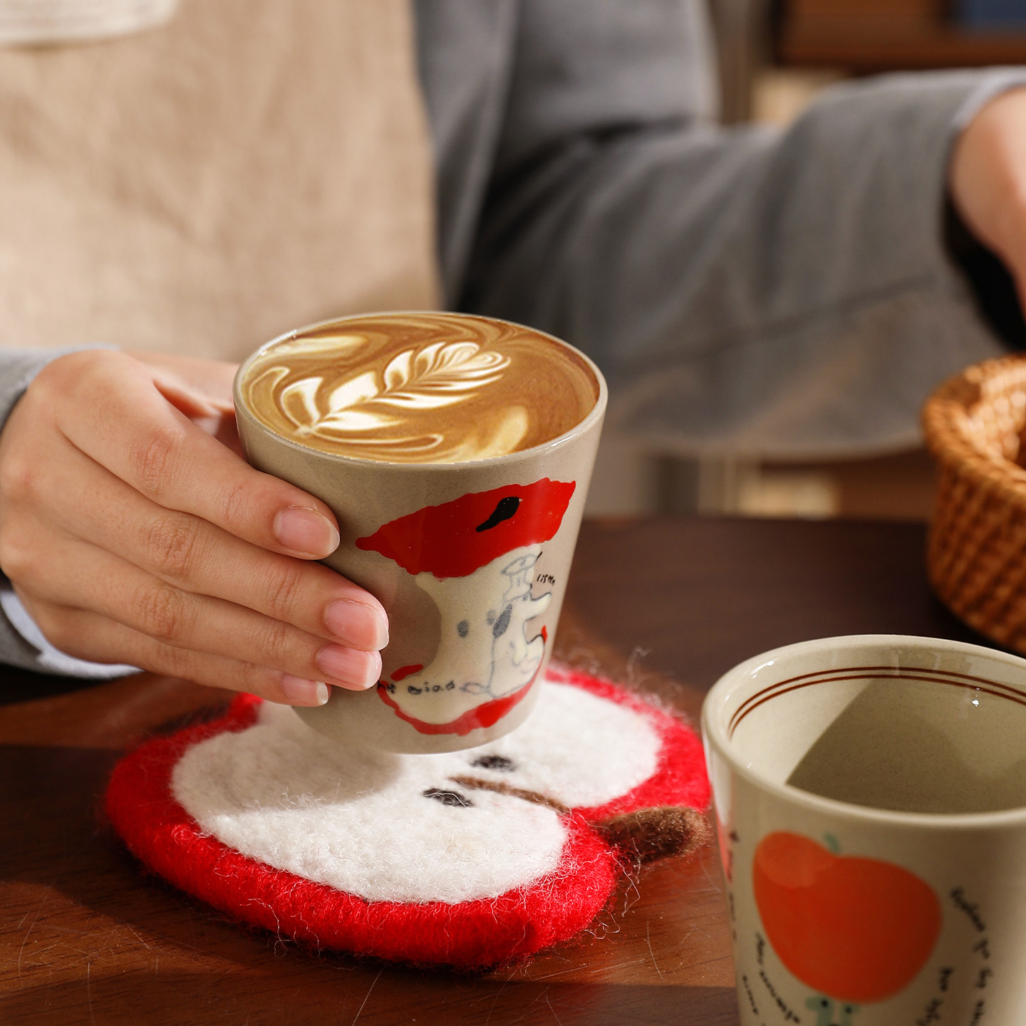 原创小众红苹果咖啡杯简约手绘陶瓷杯复古翻口马克杯水杯情侣礼物