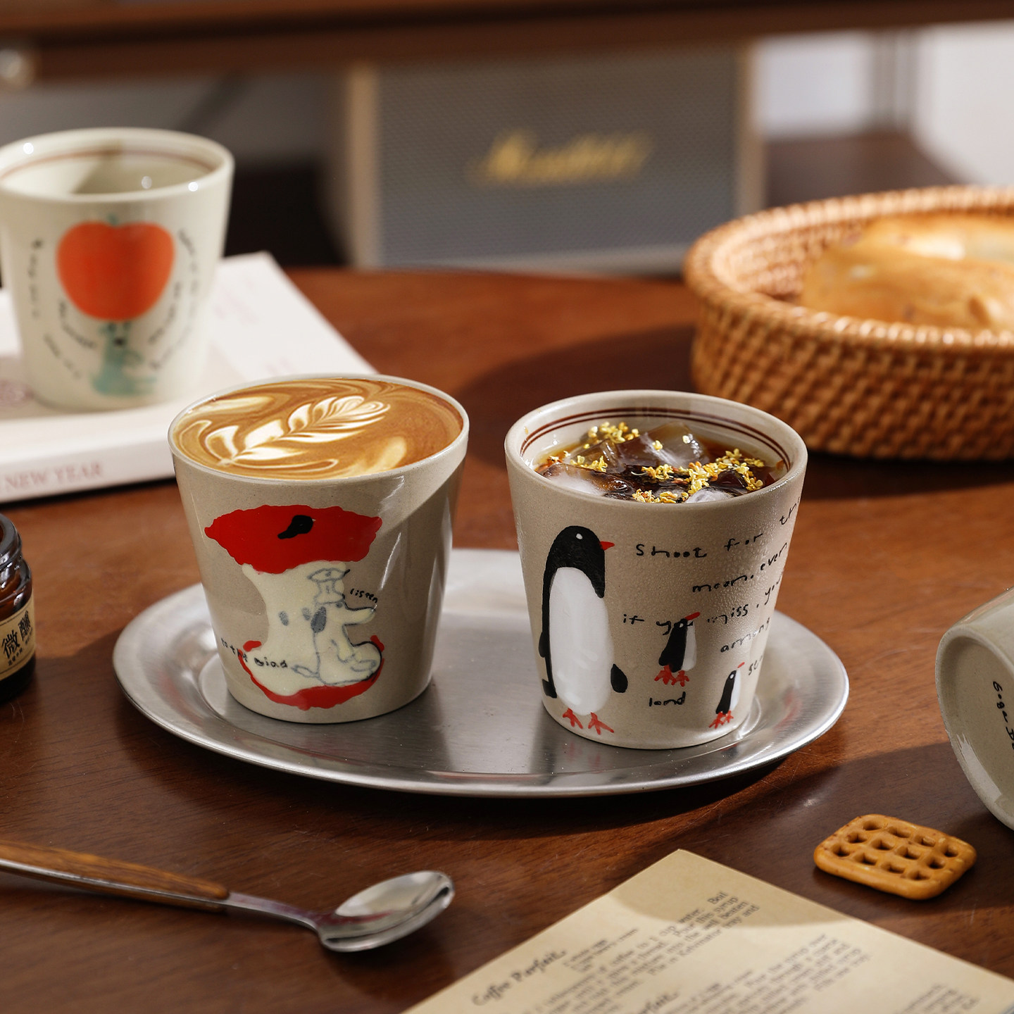 舍里小众手握咖啡杯子陶瓷马克杯女卡通水杯家用特别好看的拿铁杯