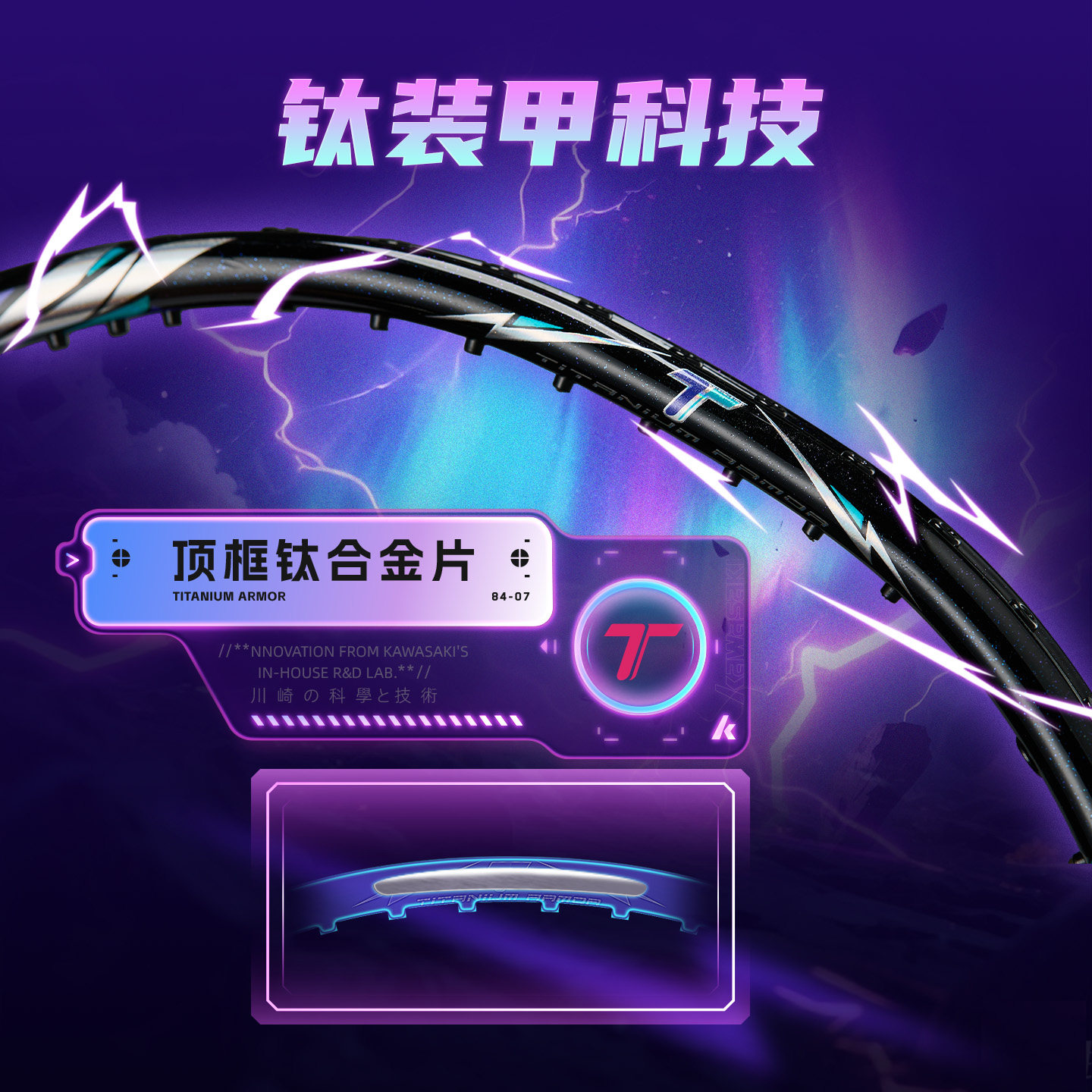 川崎极光80P羽毛球拍全碳素纤维超轻精准进攻高性能比赛训练正品