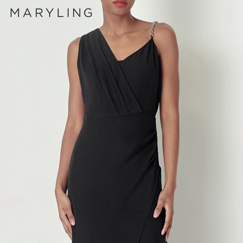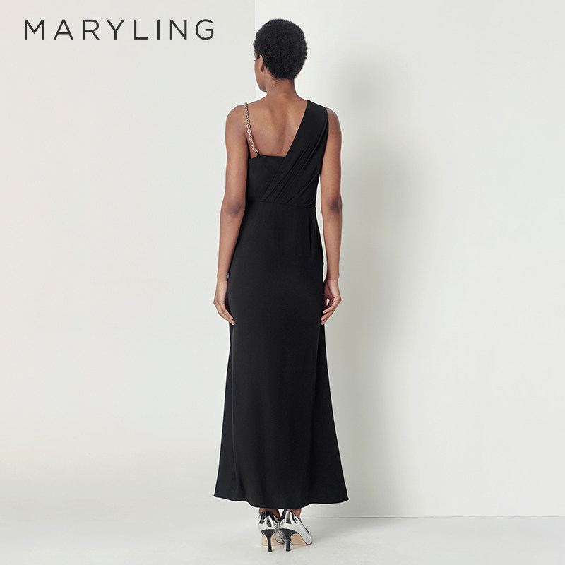 MARYLING玛俪琳秋季黑色不对称链条晚礼服连衣裙A1CGW68090