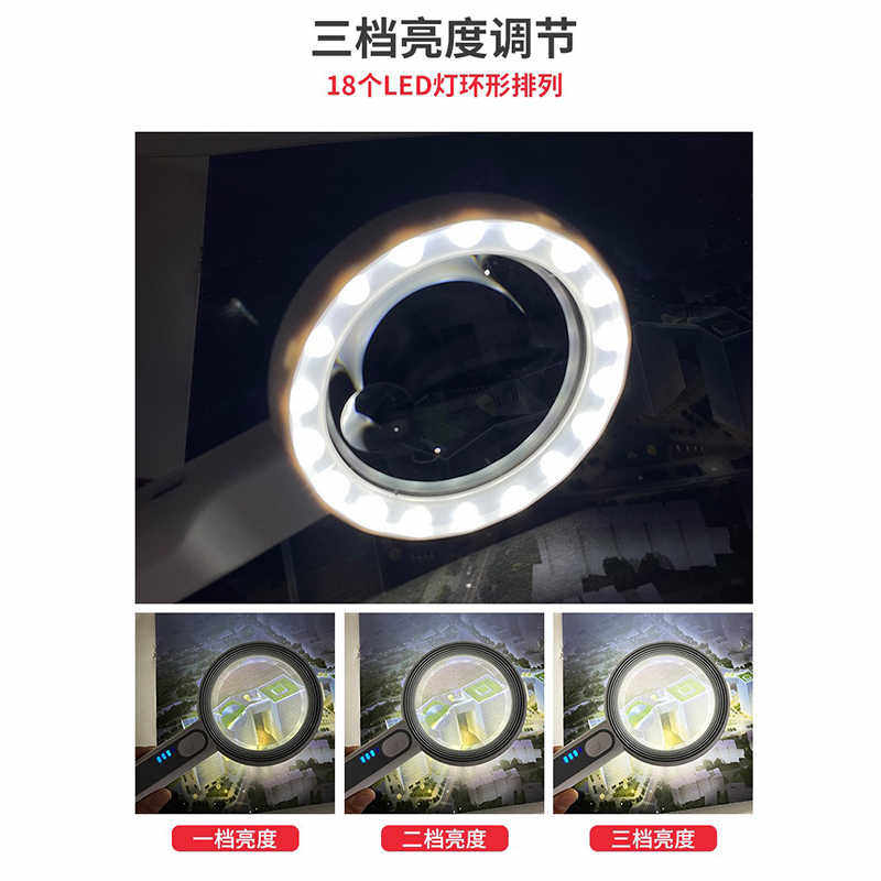 充电式放大镜老人阅读高清40倍鉴定维修带灯儿童学生