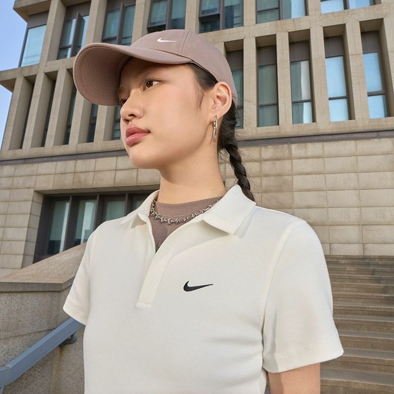 nike耐克女T恤夏季短款修身刺绣运动短袖深V翻领POLO衫DV7885-133