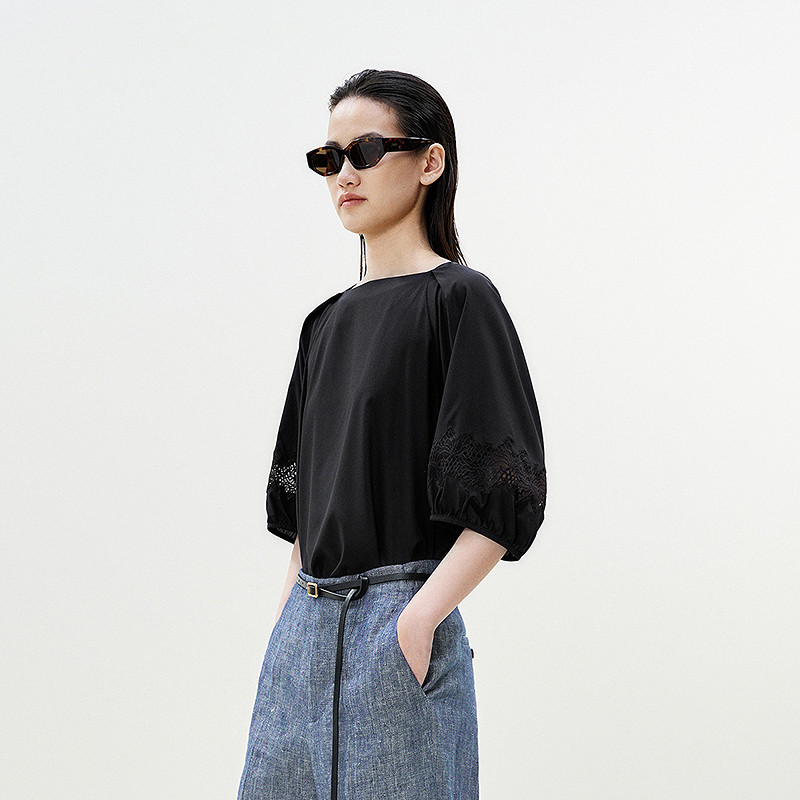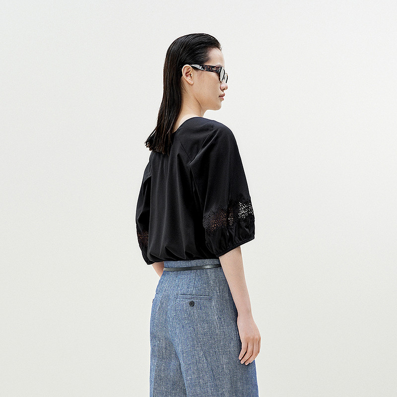 【精工系列】LESS夏季蕾丝拼接桑蚕真丝短袖衬衫女2P5214060