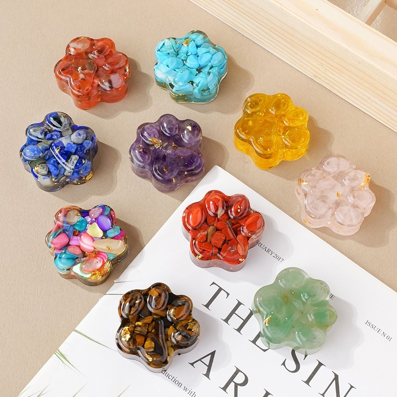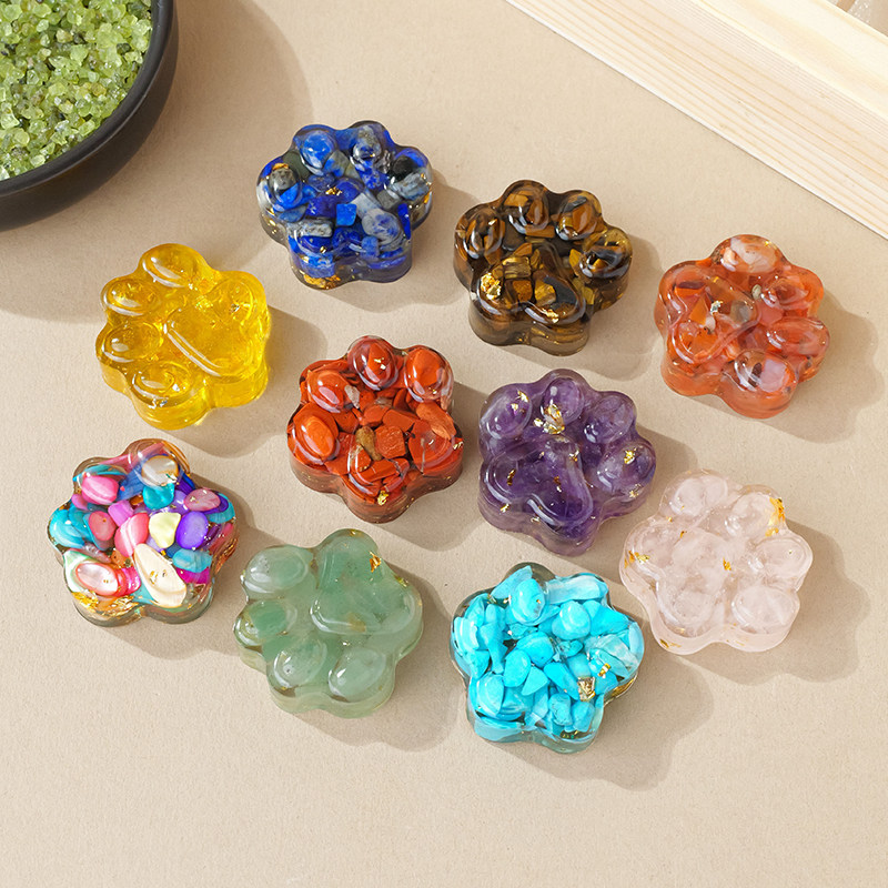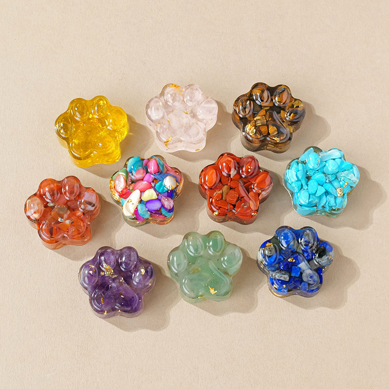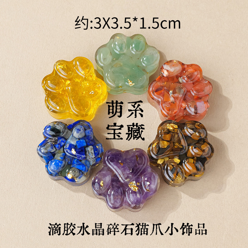 天然水晶碎石滴胶猫爪摆件水晶石可爱装饰品纪念品小礼物紫水晶