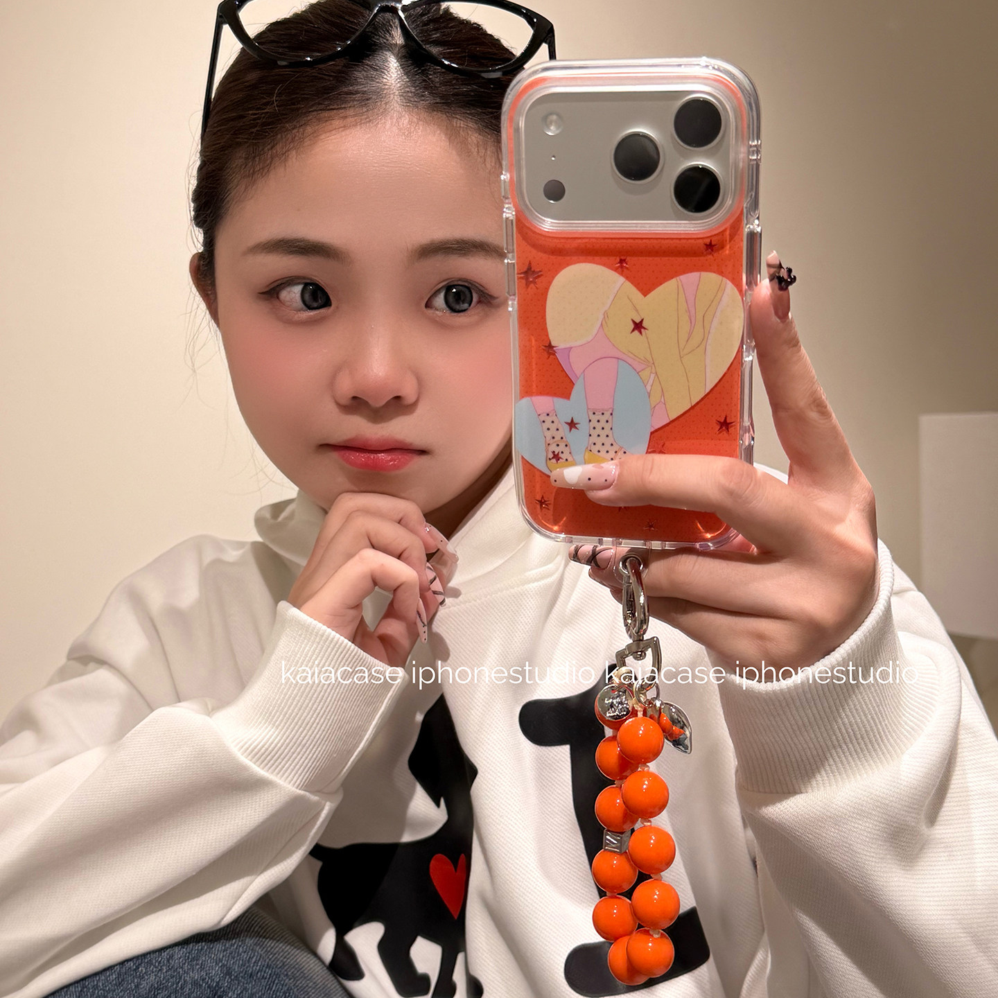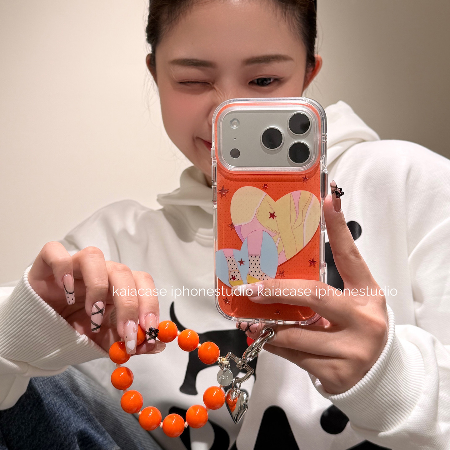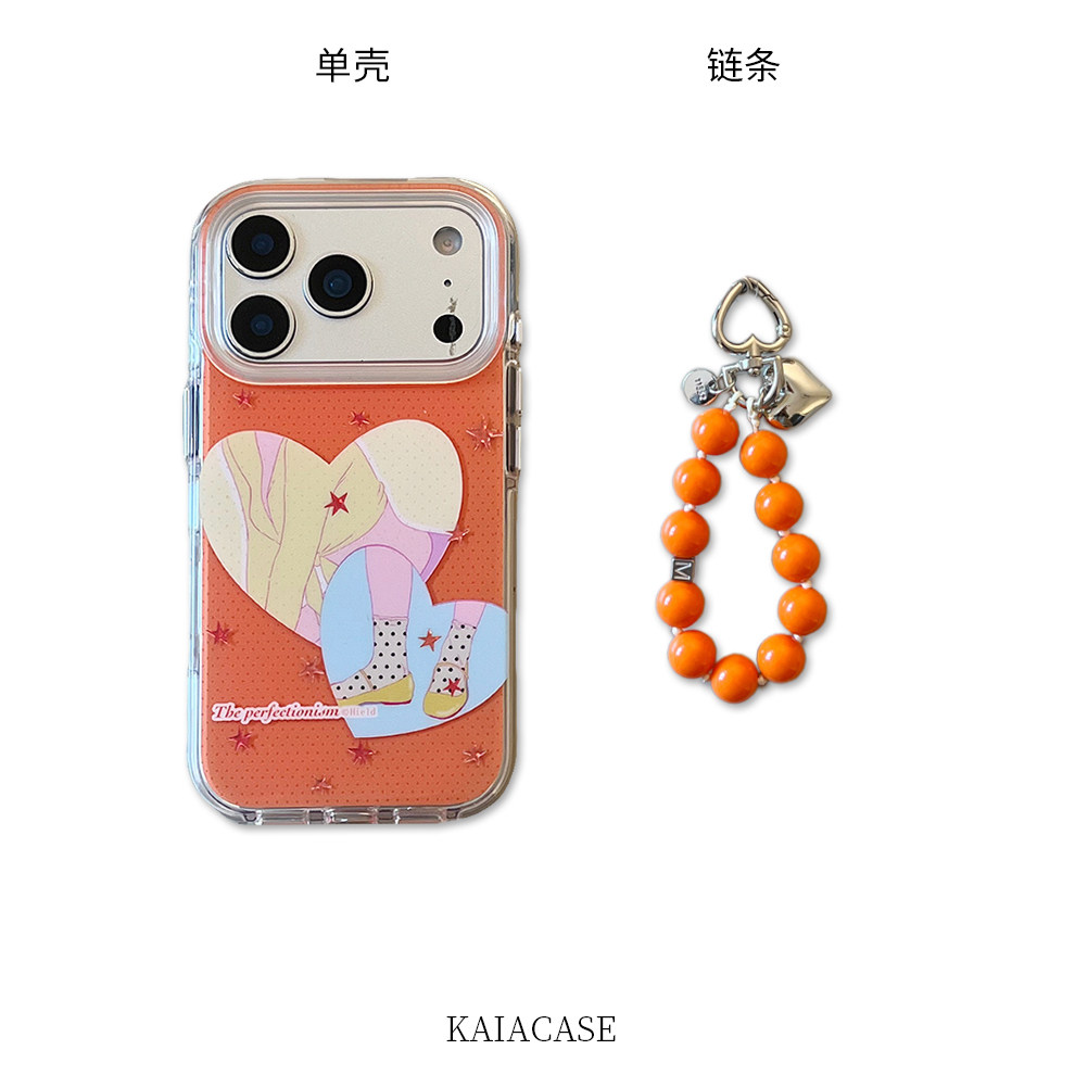 kaia 时髦少女穿搭橙星星爱心适用苹果17promax手机壳iphone16pro新款13女14pro腕带链条15pro全包防摔手机套