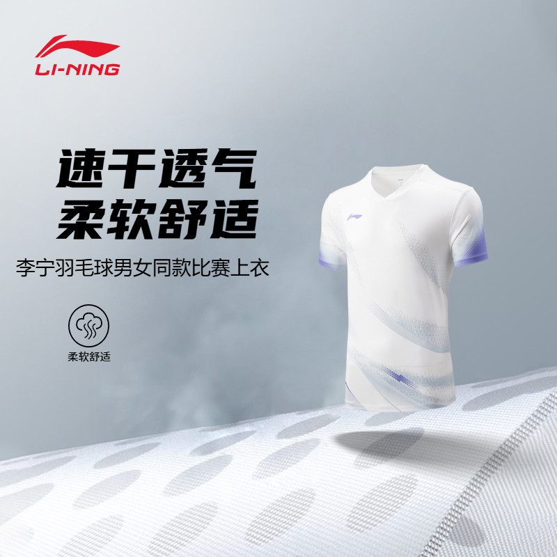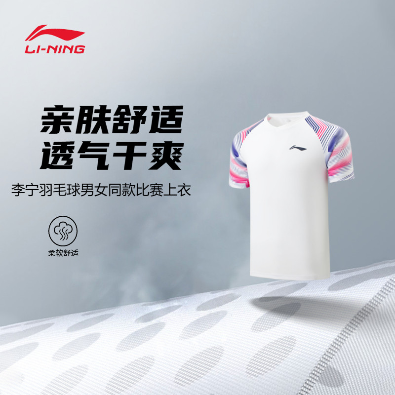 李宁羽毛球比赛服男士女士羽毛球系列春季情侣短袖上衣针织运动服