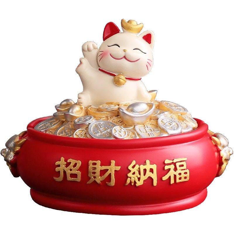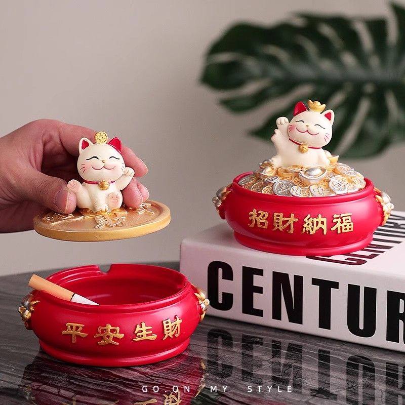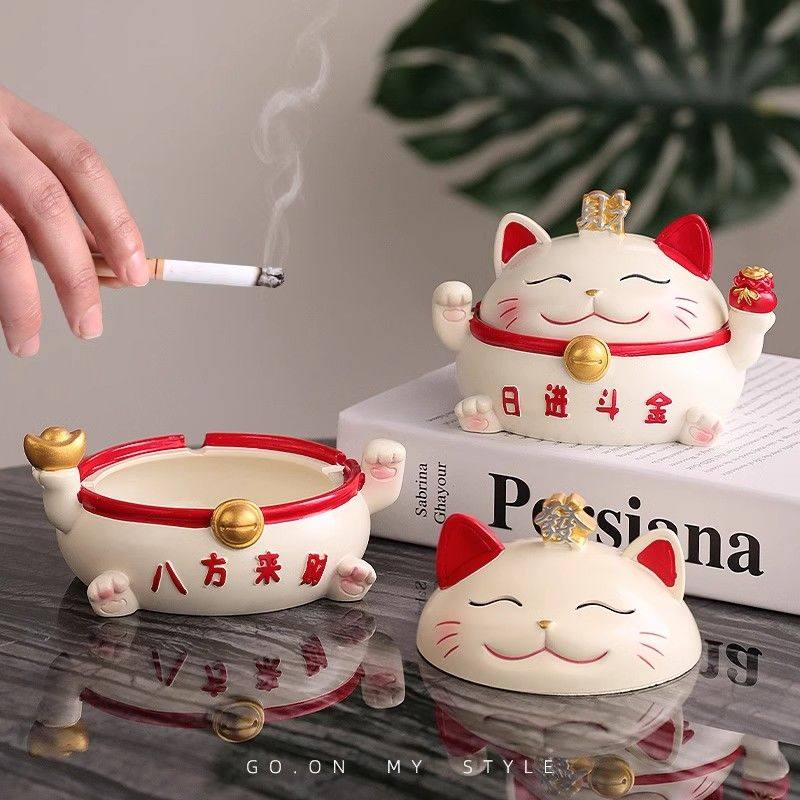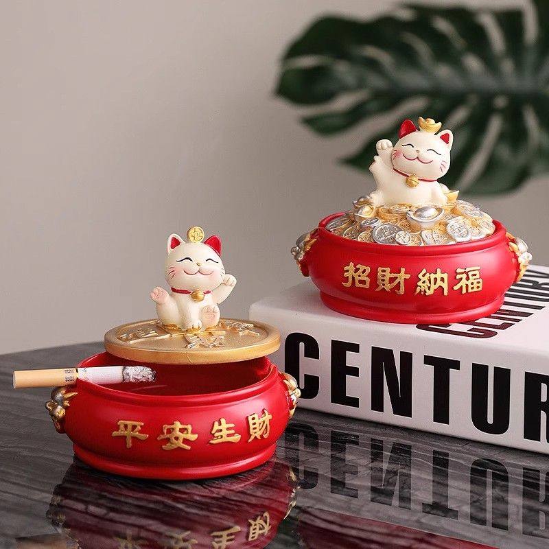 创意招财猫烟灰缸家用客厅办公室防飞灰带盖子新年春节装饰摆件