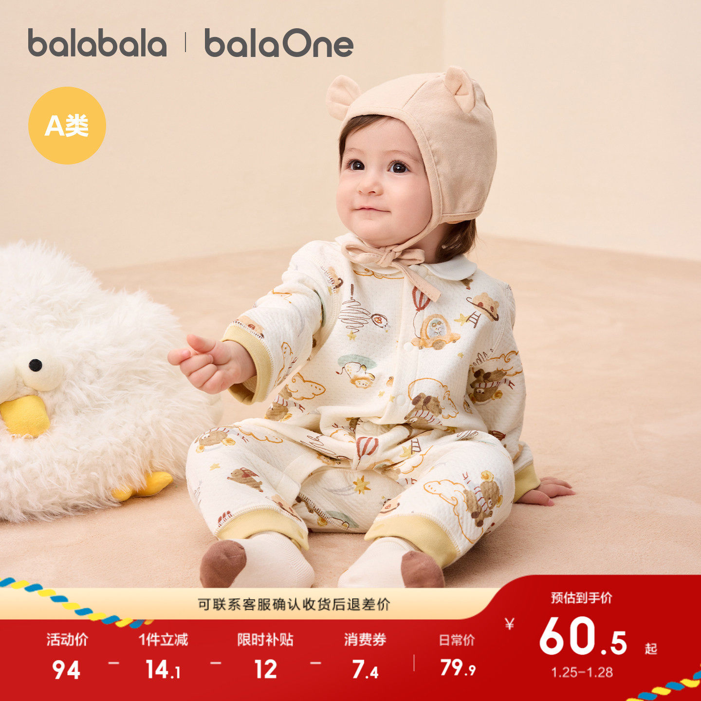 巴拉巴拉新生婴儿连体衣冬装2025款秋冬宝宝A类棉服内着哈衣爬服