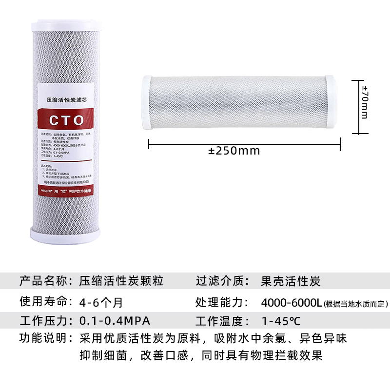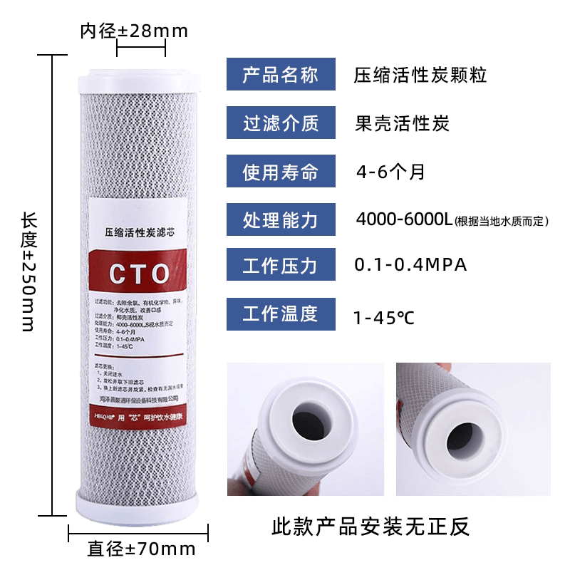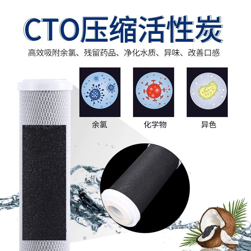 净水器10寸CTO压缩活性炭滤芯净水机通用专用前置过滤反渗透颗粒
