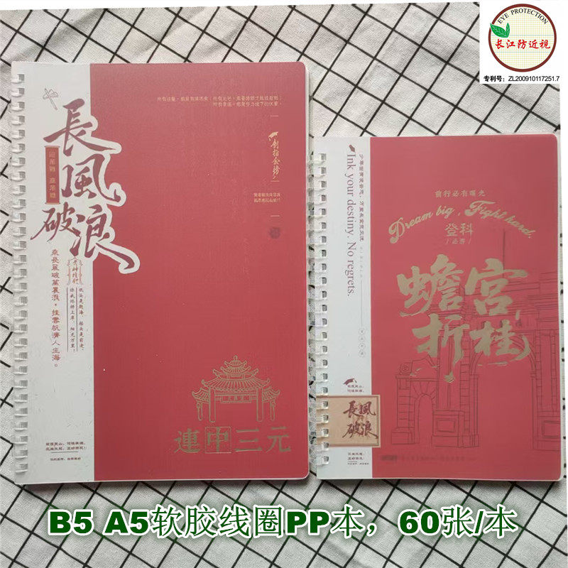 长江防近视笔记金榜题名系列16K横线B5平摊办公笔记PP软胶线圈本