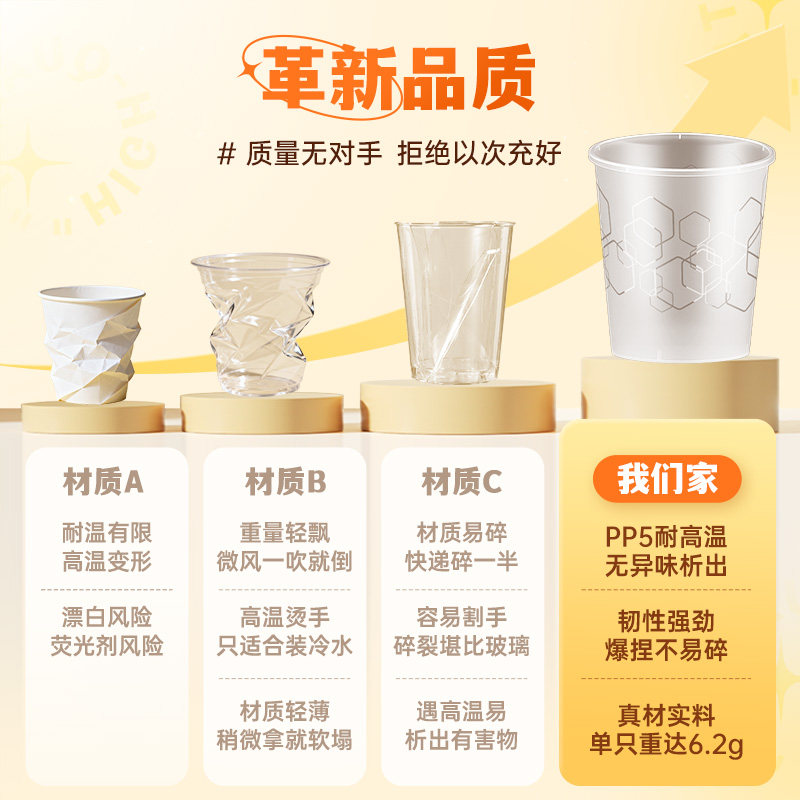 PP航空杯一次性杯子耐高温50只加厚加硬茶杯酒杯太空杯PS塑料水杯