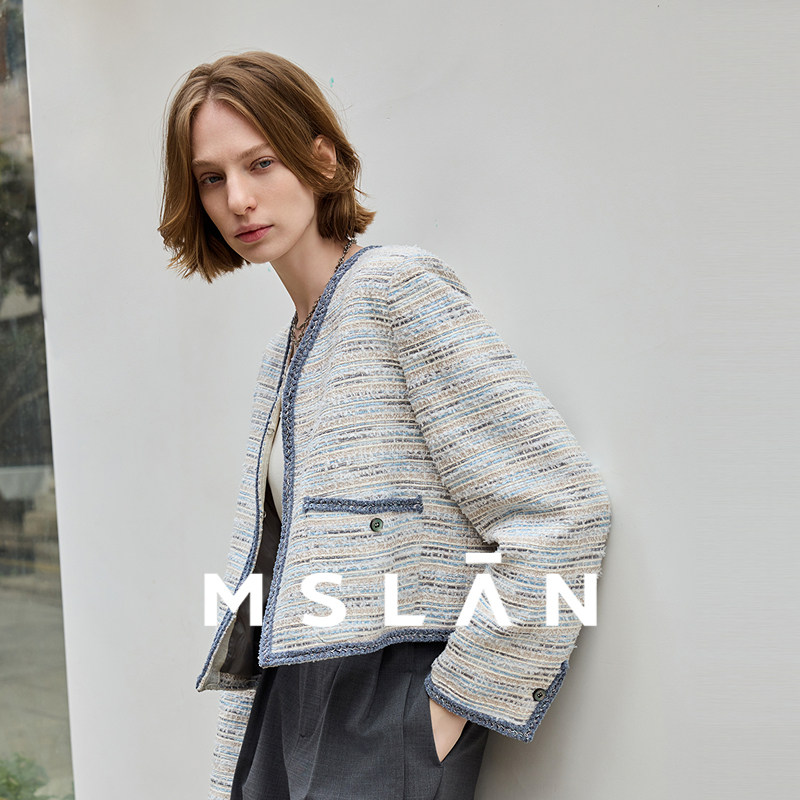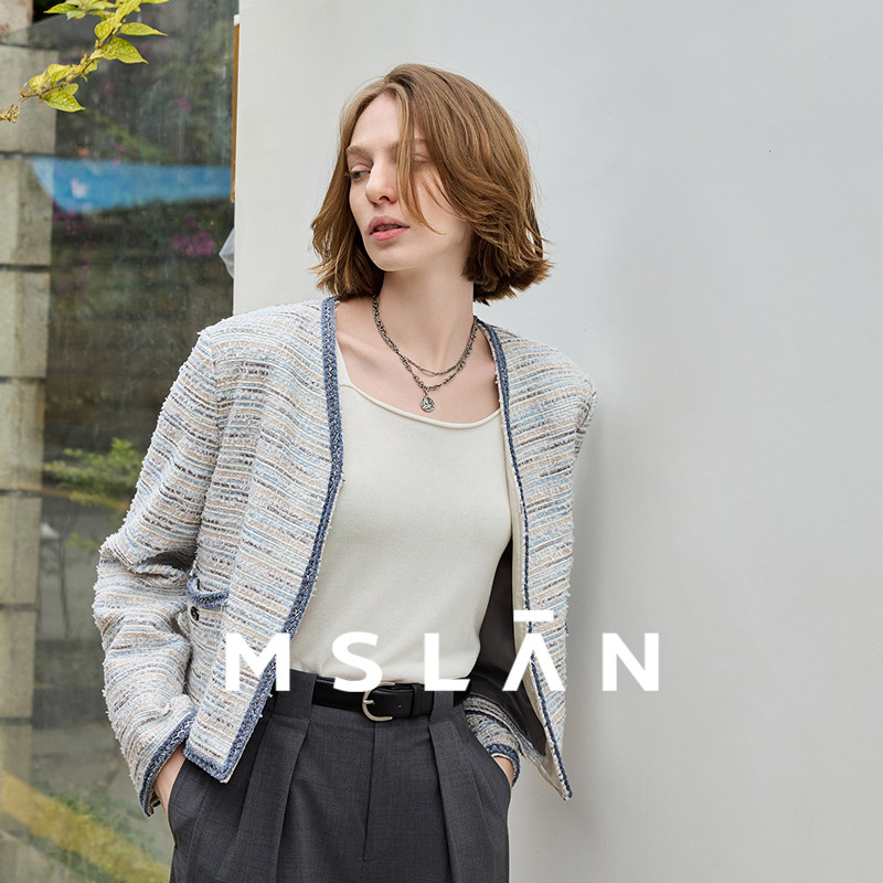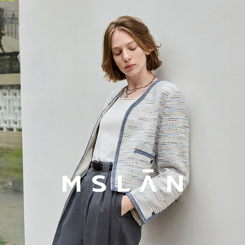 【岛屿天堂】MSLAN新静奢撞色小个子外套法式小香风MGAW391