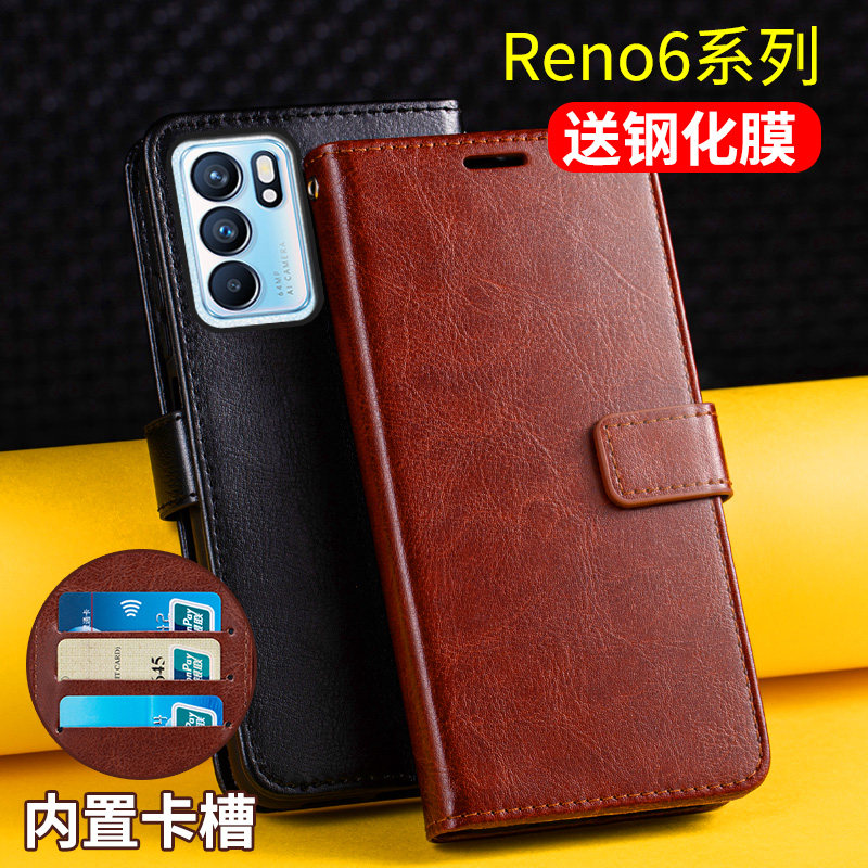 适用opporeno6手机壳翻盖式reno6pro十保护套皮套pro+带盖reon6外壳全包0pp0防摔女男款opop钱包插卡皮夹套5g