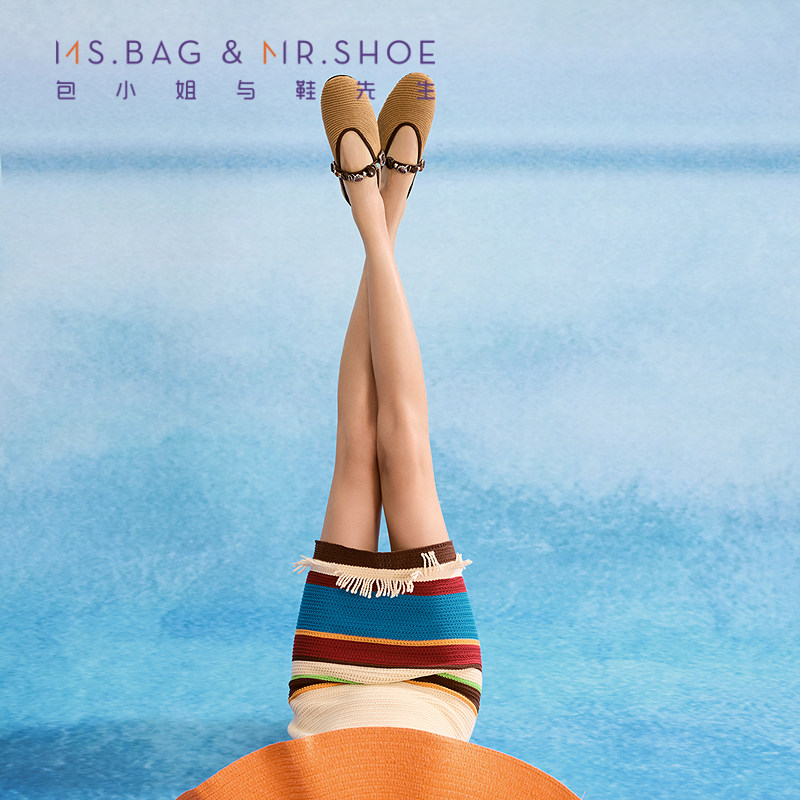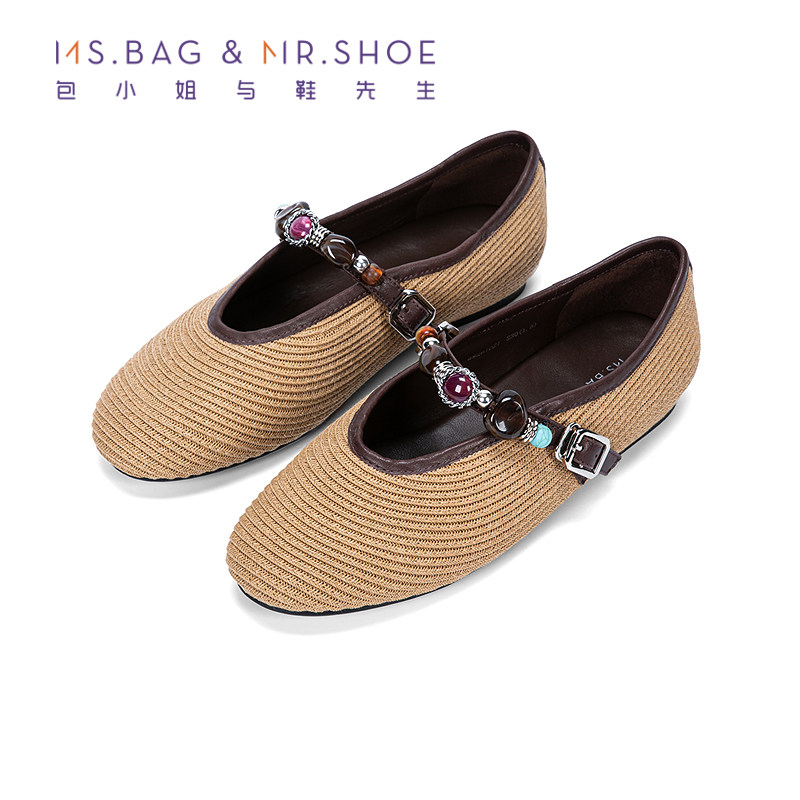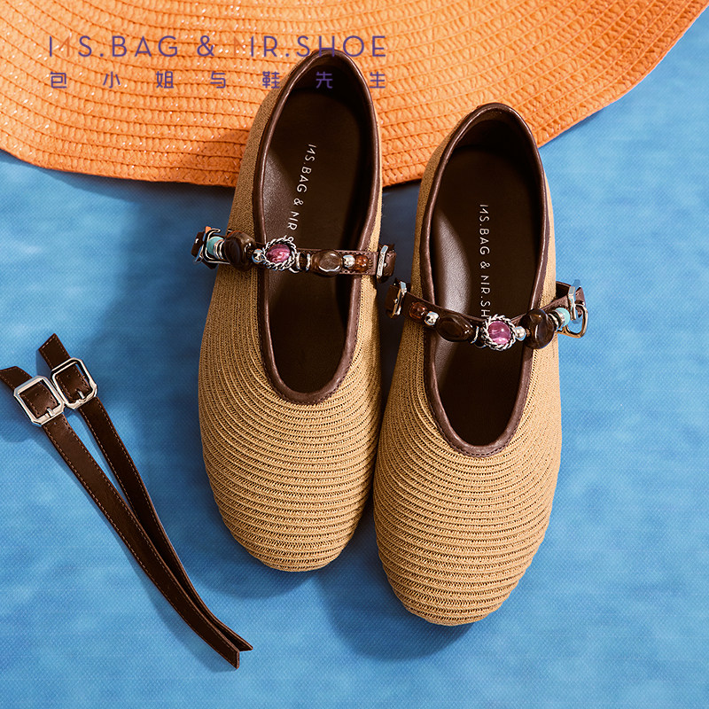 包小姐与鞋先生2026年春季新款草编游牧风串珠深口平底单鞋261021