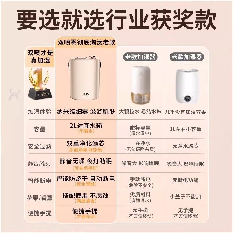 加湿器家用卧室静音办公室桌面2025新款无线空气学生宿舍大喷雾孕妇婴幼儿香薰保湿神器大雾量室内充电款便携