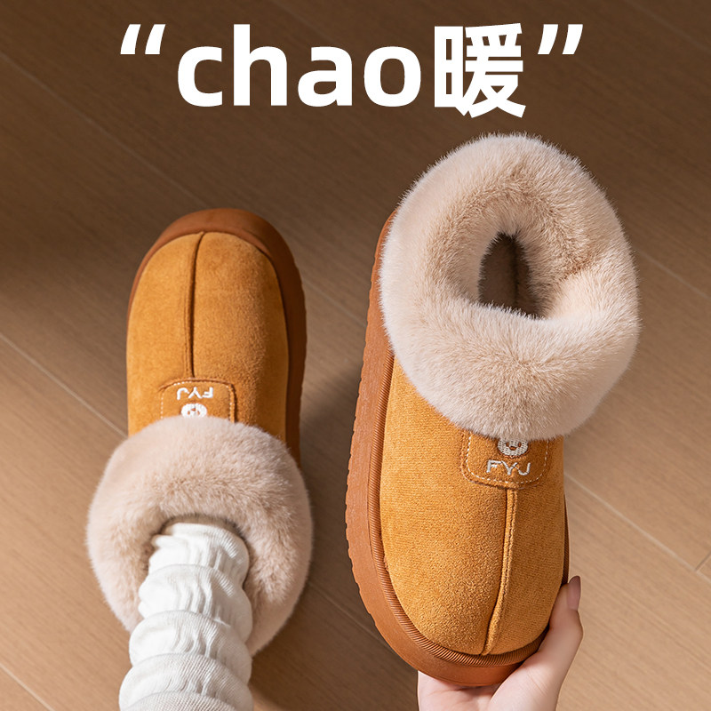 2026新款翻半包跟棉拖加绒保暖情侣外穿毛毛绒厚底防滑居家棉拖鞋