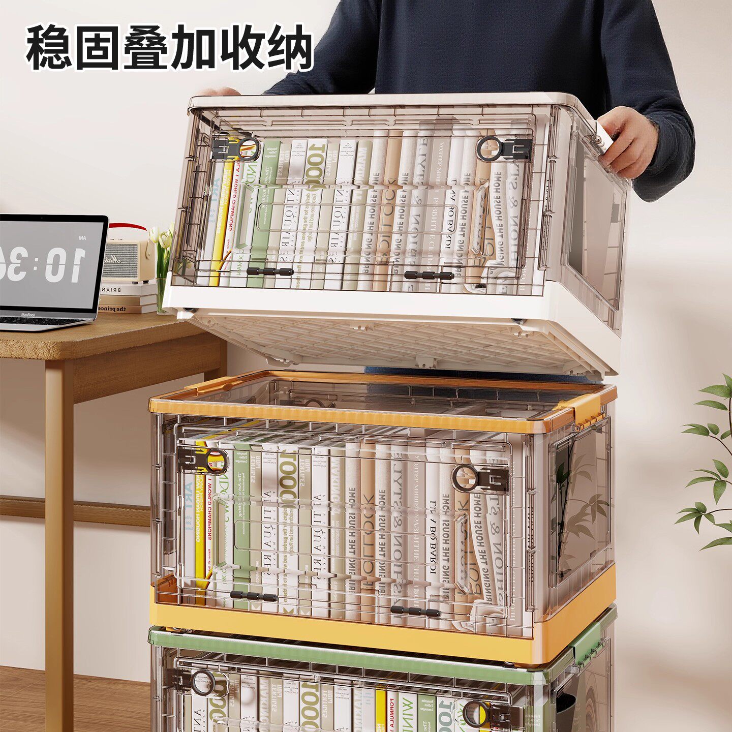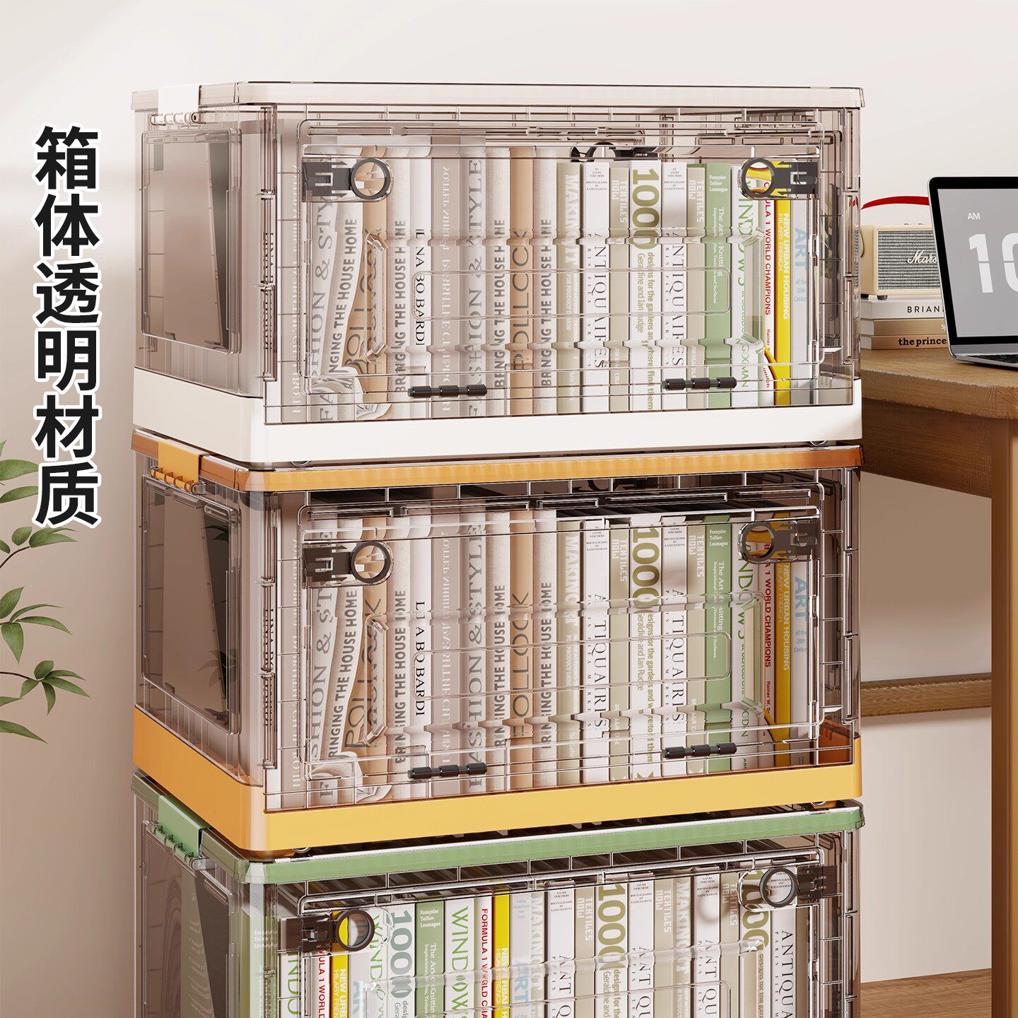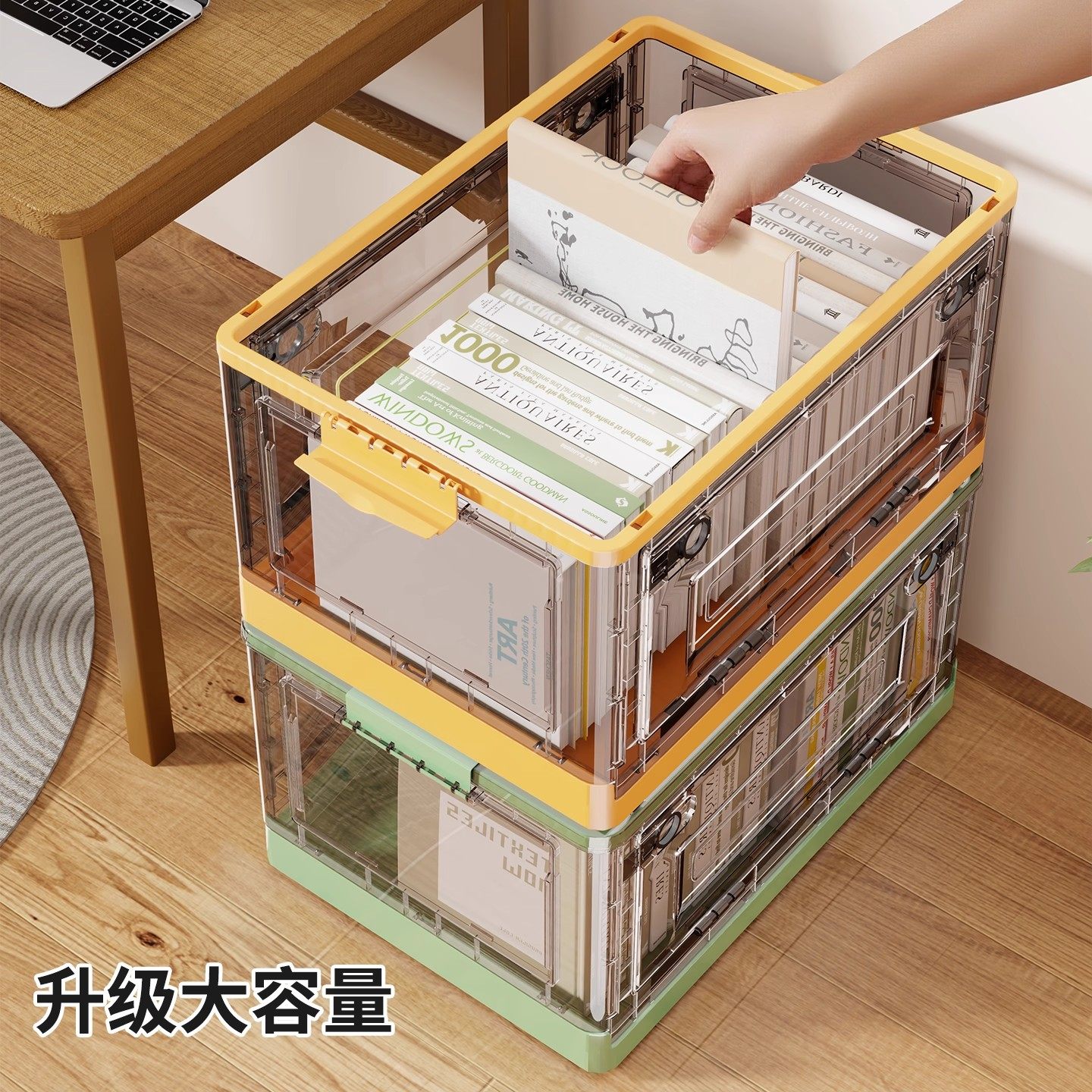 书箱学生书本收纳箱可折叠教室装书整理箱子大容量透明书籍储物箱