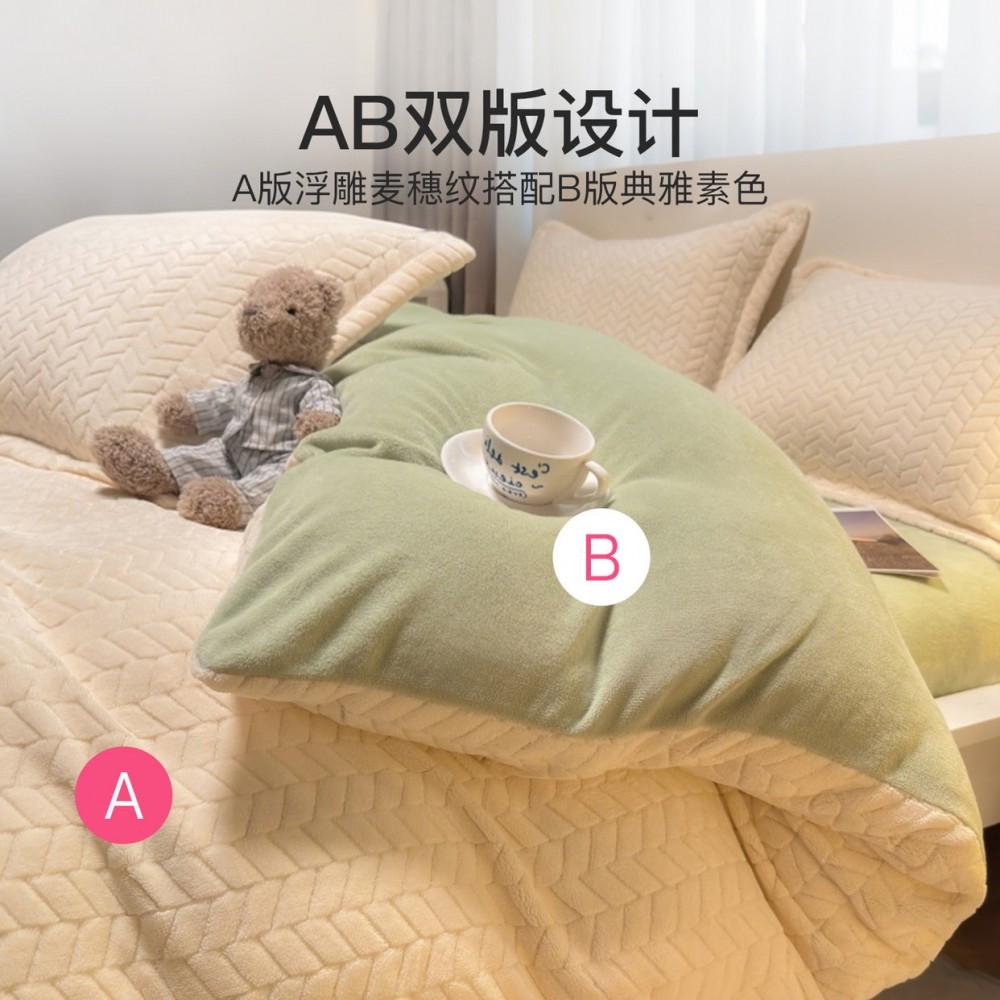 秋冬季加厚四件套牛奶绒被套床单双面加绒被罩床笠学生宿舍三件套