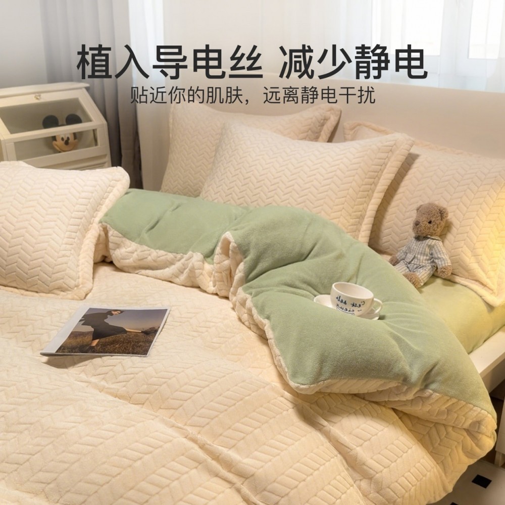 洁丽雅牛奶绒四件套冬季珊瑚绒床品被套床单加绒法兰绒床上三件套