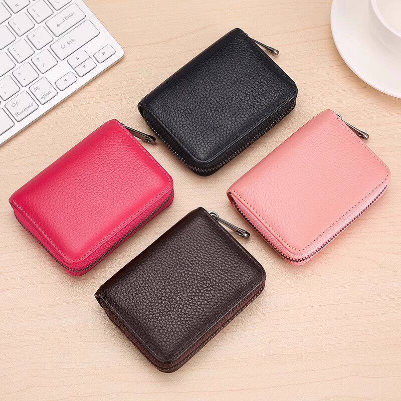 稻草人卡包女士新款证件女式牛皮小巧真皮拉链钱夹小众银行卡钱包