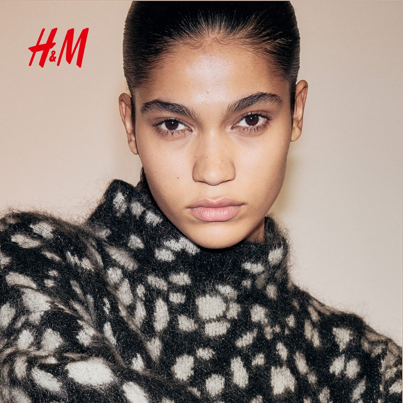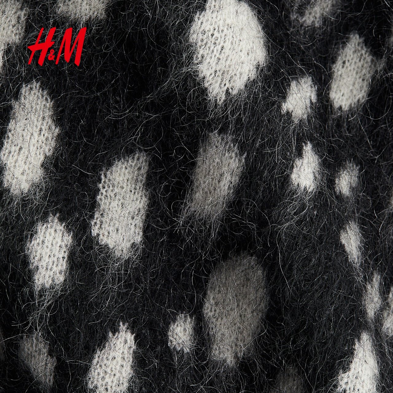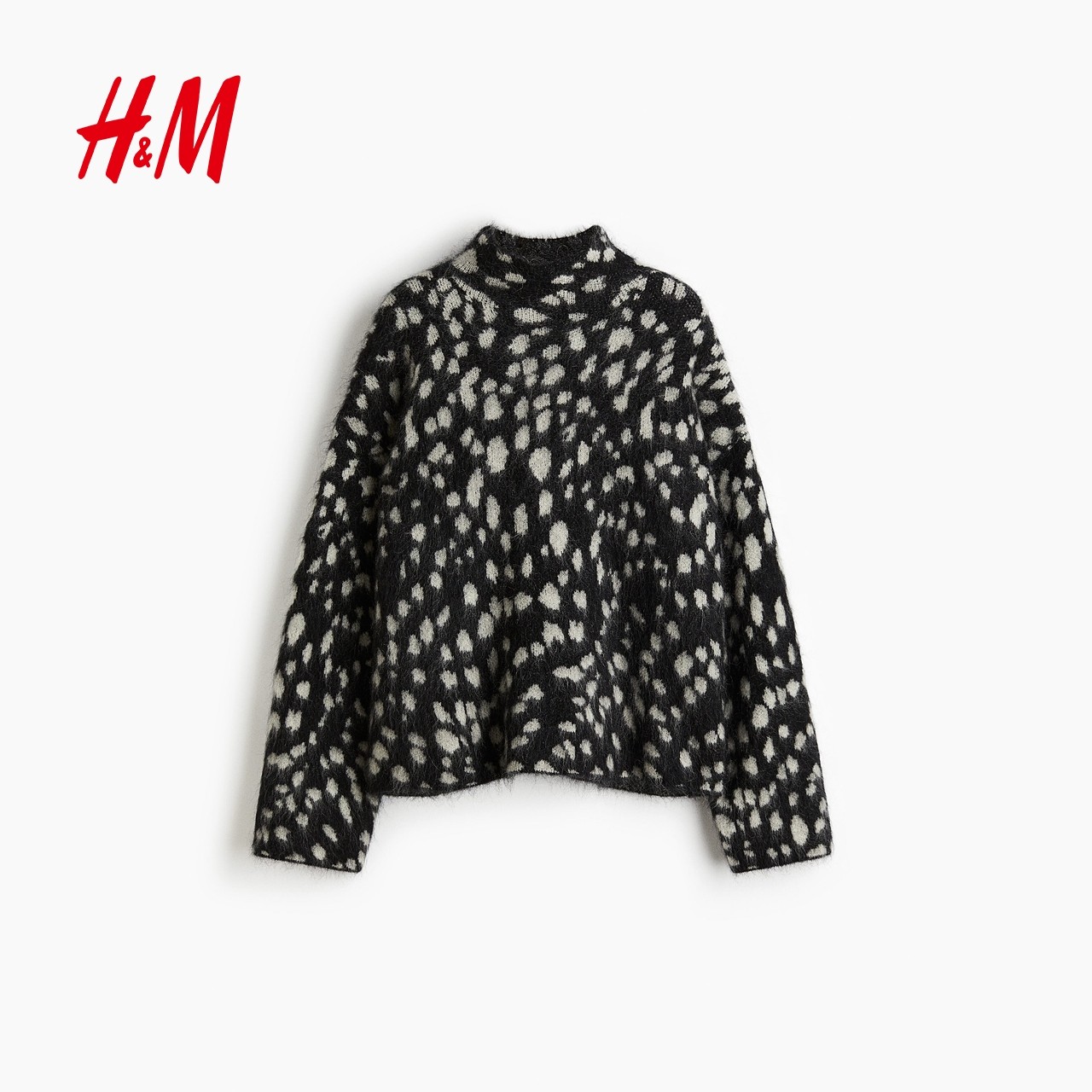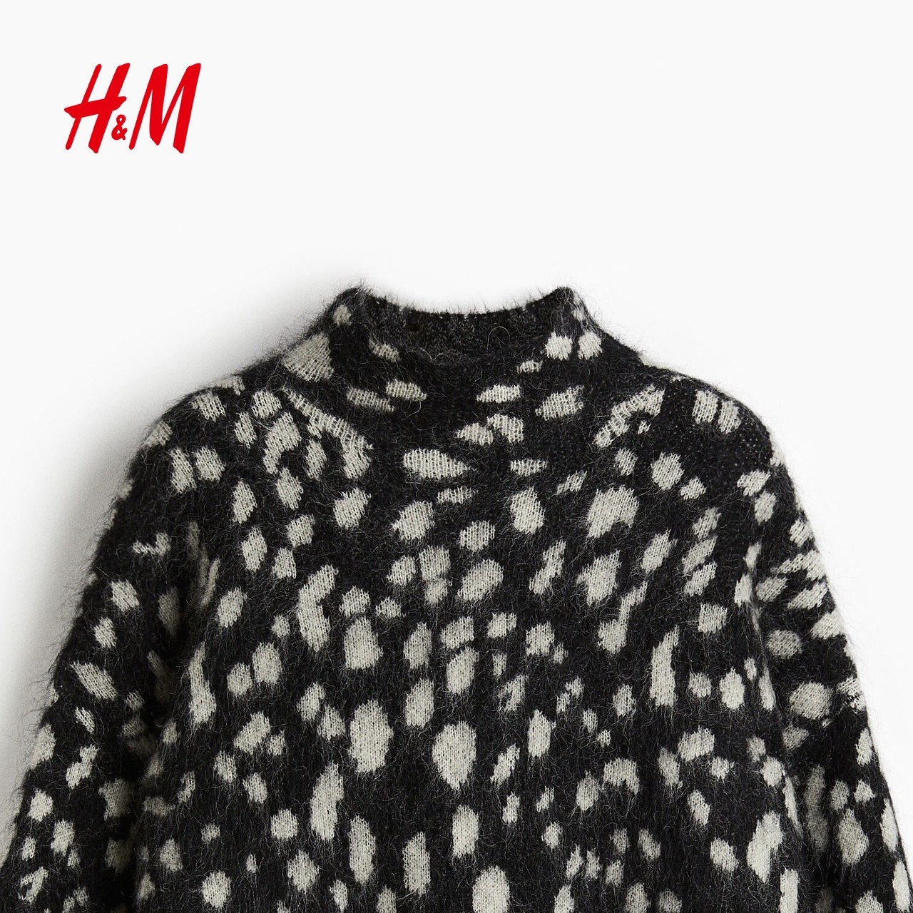 HM女装毛针织衫2025新款入冬撞色叠穿马海毛混纺打底衫1251942