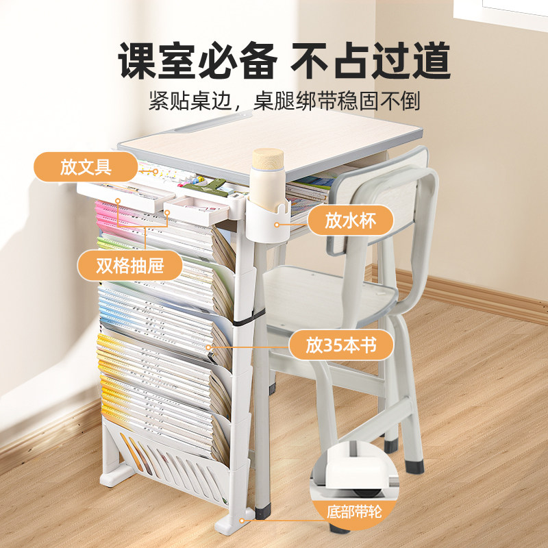 悟生课室头等舱桌边书架收纳盒桌边带轮可移动带抽屉书桌课桌侧边收纳高中生装书收纳箱教室用桌边置物架