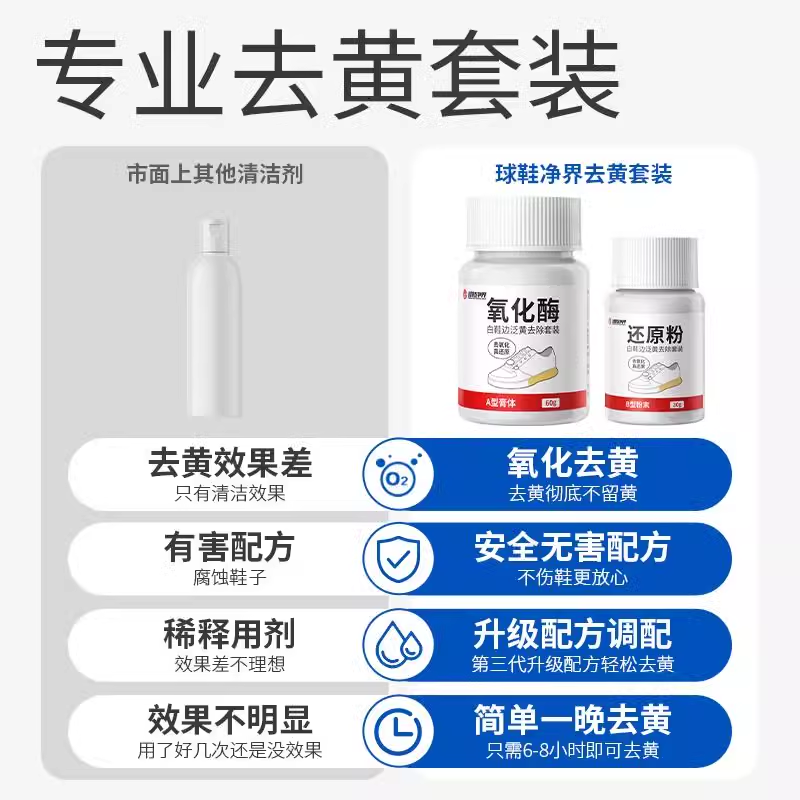 鞋边去黄发黄去氧化还原剂氧化酶洗小白鞋清洁清洗剂增白鞋底球鞋