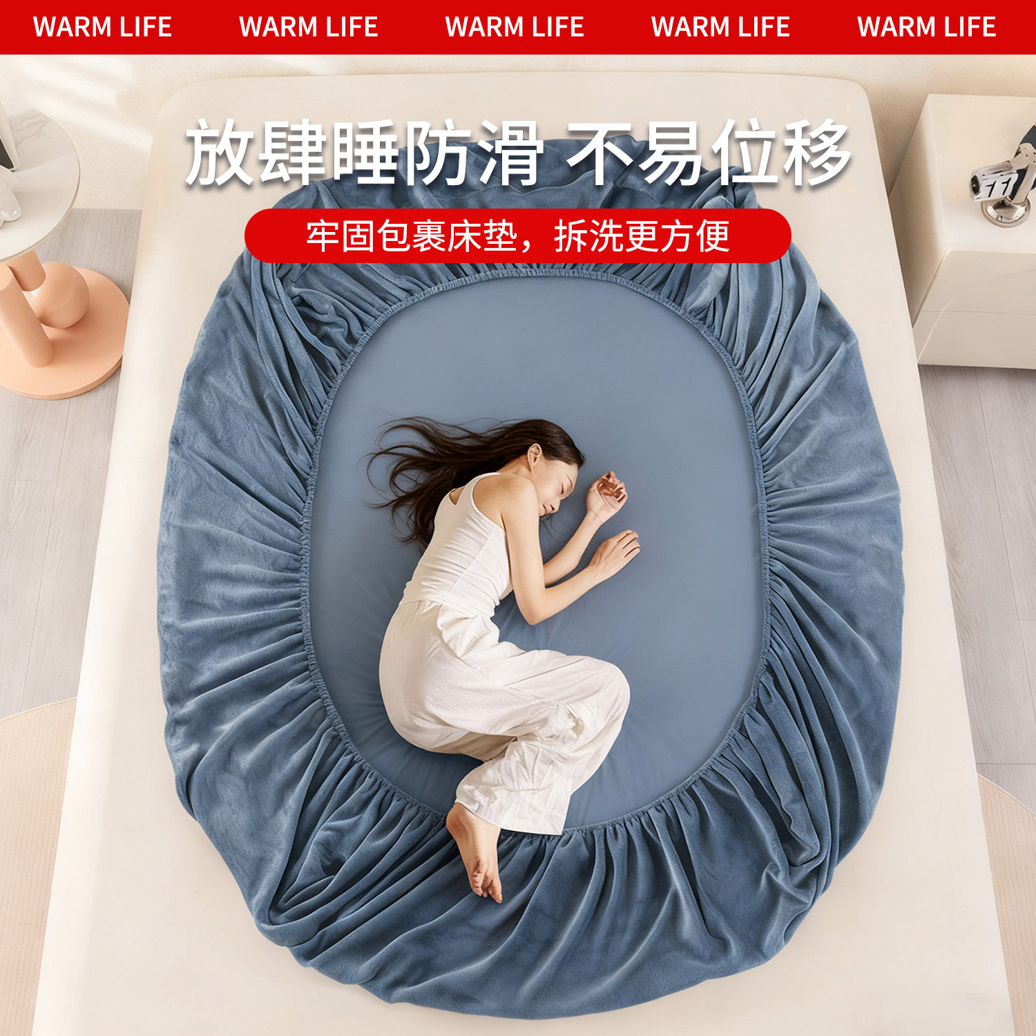 牛奶绒床笠纯色加厚保暖床垫保护罩宿舍床单床褥垫保护套2025新款
