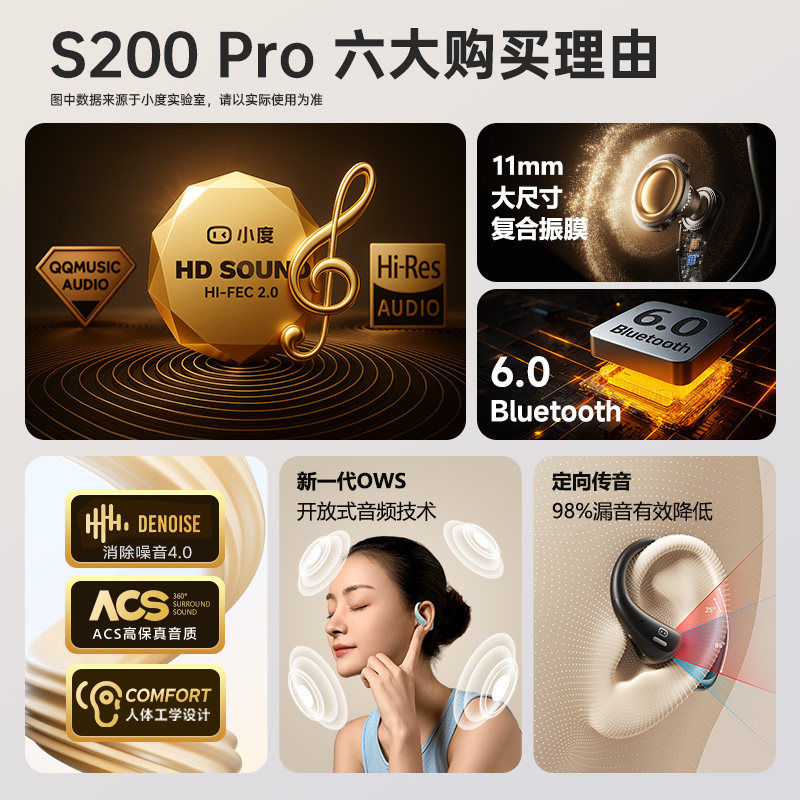 小度S200pro开放挂耳式蓝牙耳机无线AI智能翻译降噪运动跑步耳机