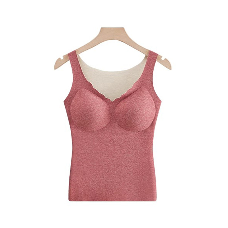 保暖背心女士德绒蚕丝发热带胸垫免穿文胸内衣冬季打底衫上衣贴身