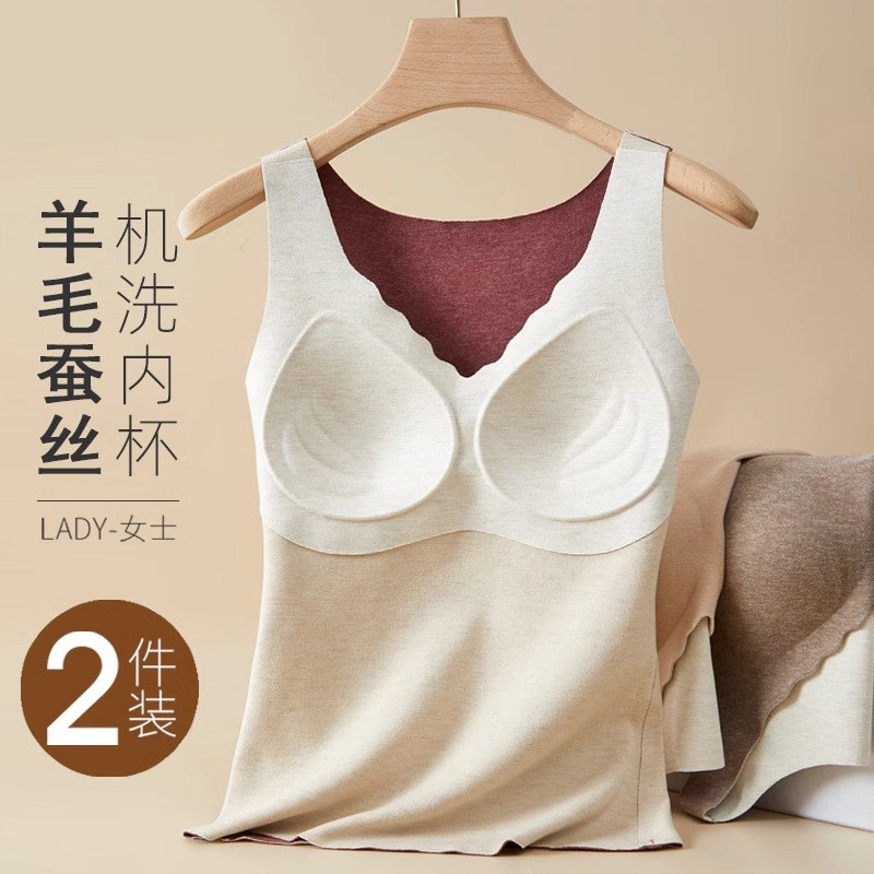 羊绒保暖背心女带胸垫秋冬加绒吊带胸罩一体式内衣冬季内搭打底衫