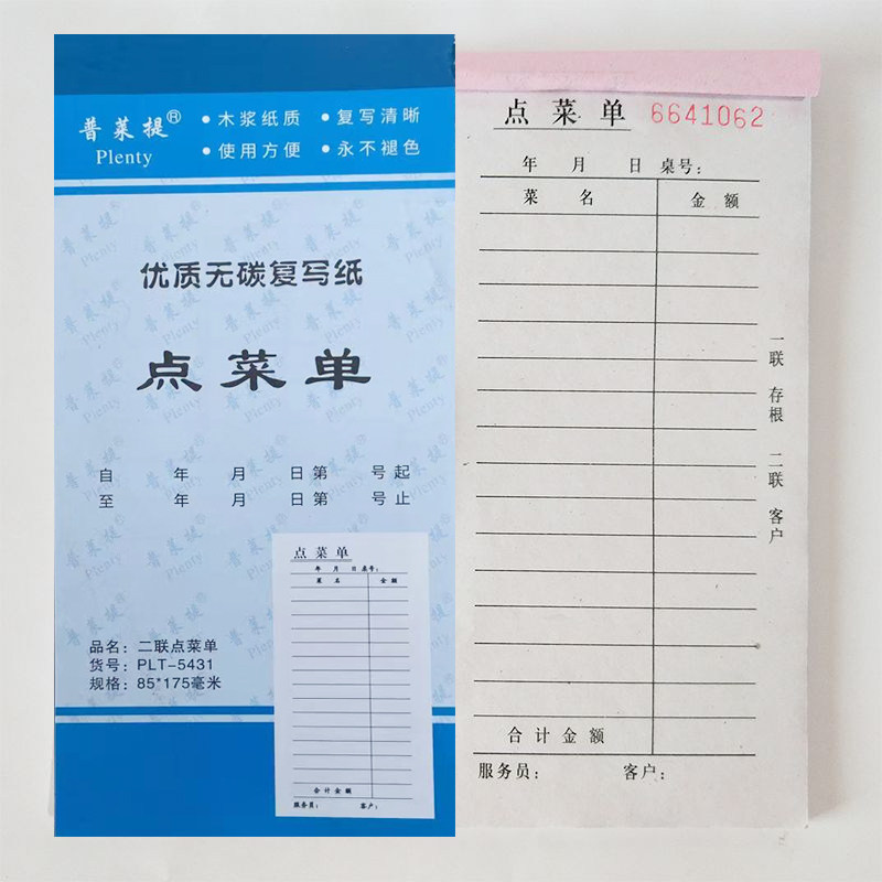 54开点菜单二联两联三联无碳自动复写清晰饭店餐厅烧烤批发点菜本